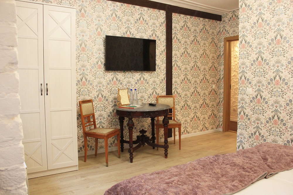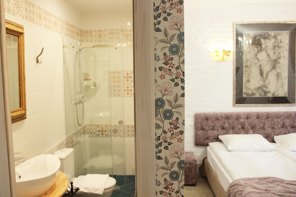 Интересное оформление отеля. Самый центр. Находится на третьем этаже жилого дома. Рукописное приветствие от менеджера отеля. Нет холодильника в номере. Завтраки простенькие, но съедобные