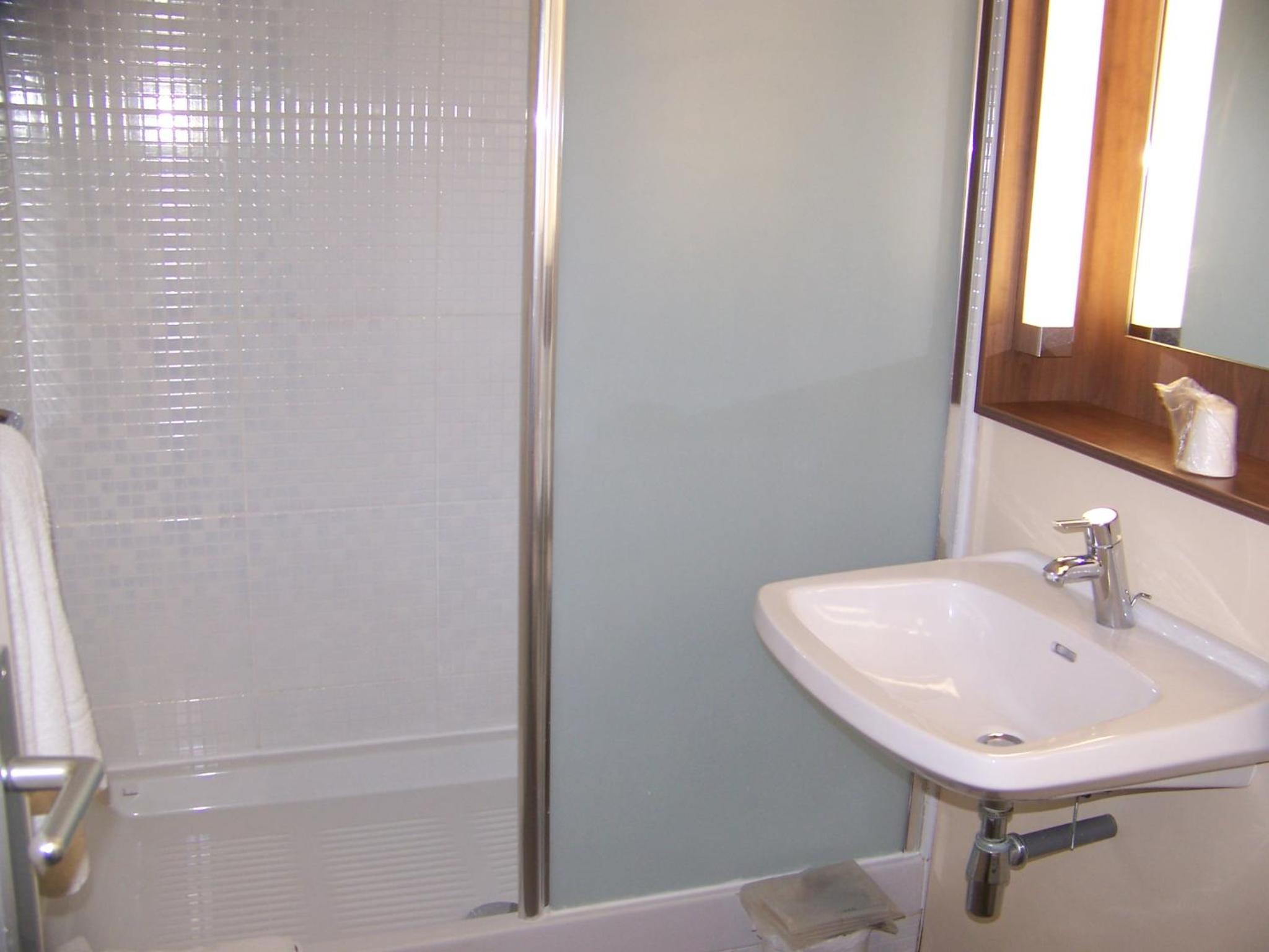 chambre propre, bien aménagée. salle de bains avec douche. petit déjeuner correct.