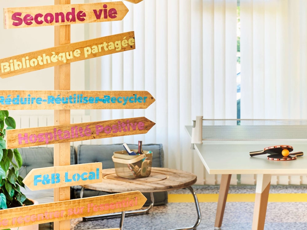 Décoration faite avec de la recup. Des produits locaux sont proposés. Super niveau ecoresponsabilite!! C’est tellement rare.