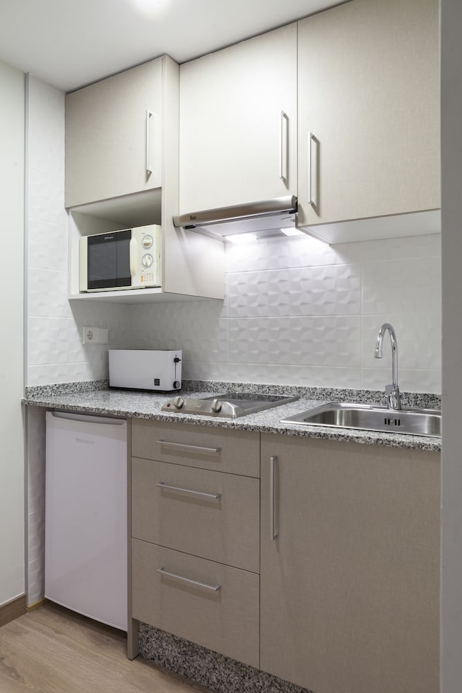 There’s everything you need to self cater , the apartments are just across the street from the supermarket . The place is spotlessly clean ,there’s complimentary shower gel ,hand gel and shampoo , you even get washing up liquid!! It’s only a short walk to the beach and short walk to everything in the old town of Benidorm. I can’t believe it’s only officially two star !!!!