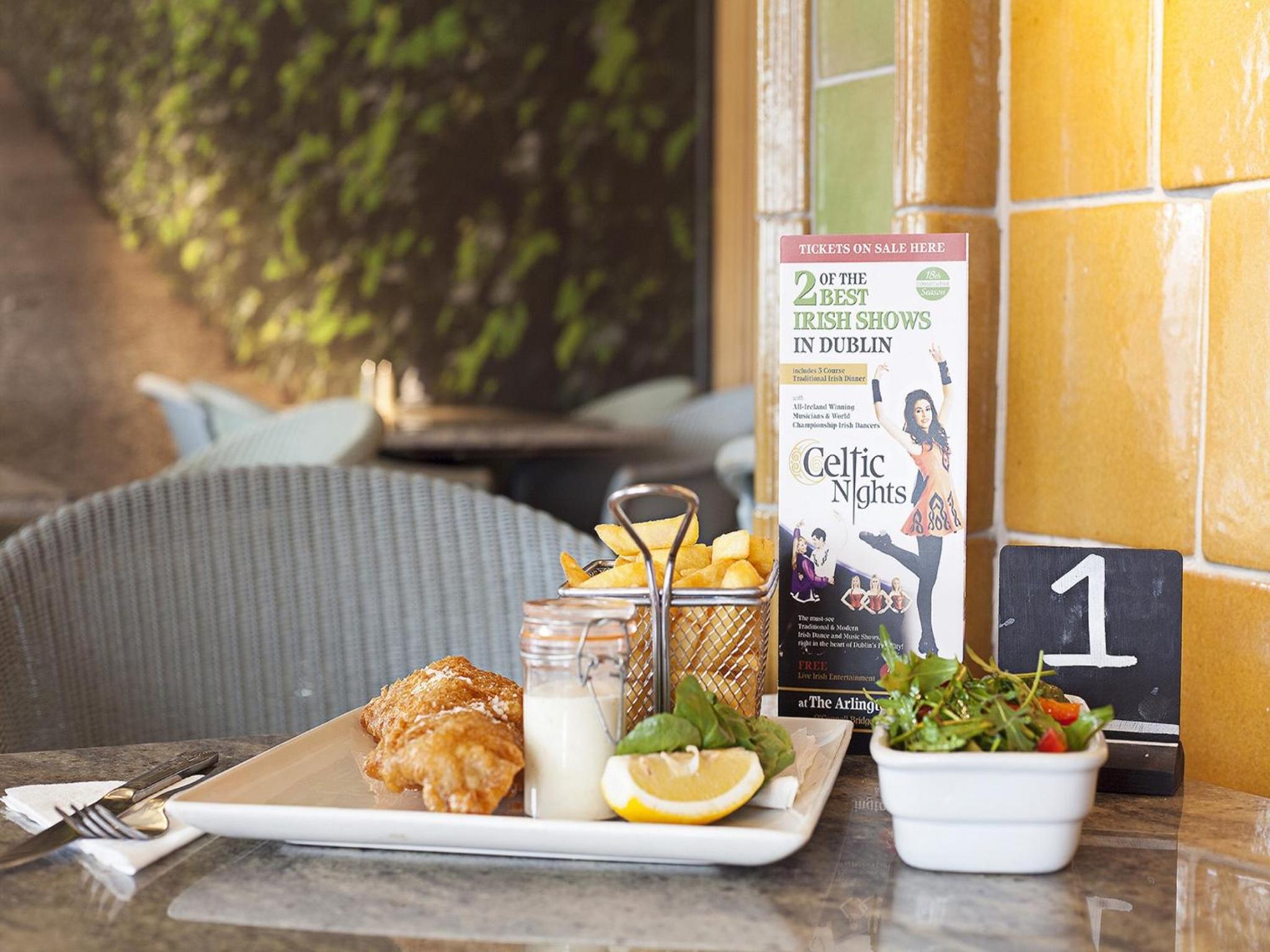 Indulge in a variety of culinary delights at The Arlington, from traditional Irish dinner and dancing shows to extensive menus at Knightsbridge Bar & Terrace and Knights Bistro.