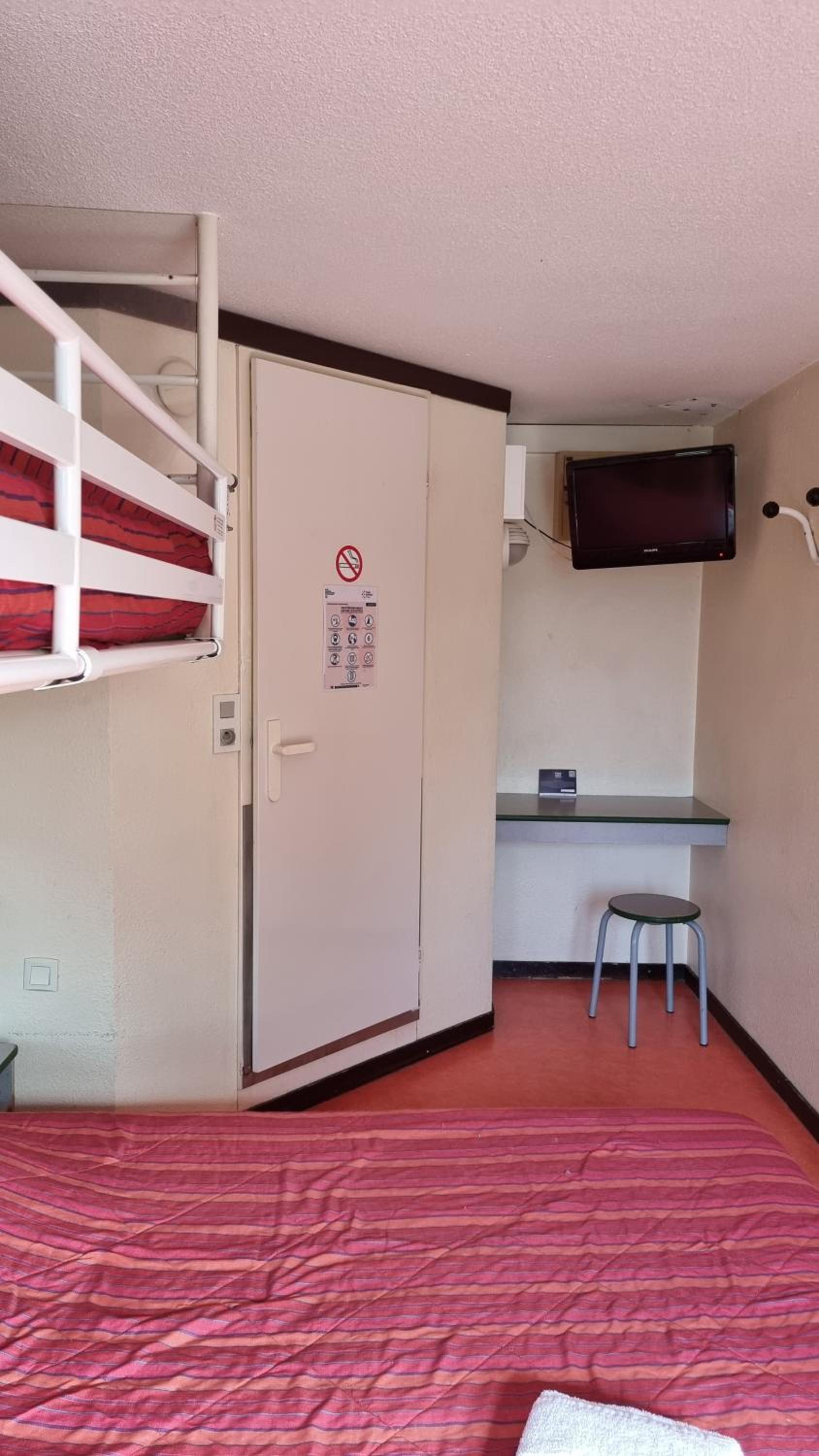 Propreté a revoir j'ai demandé au monsieur de l'accueil si je pouvais avoir une couverture ne sachant pas faire fonctionner ce vieu radiateur il m'a dit qu'il allait la monter au final rien. Une seule prise pour toute la chambre salle de bain compris bien haute très pratique pour charger les portables surtout quand on est deux.