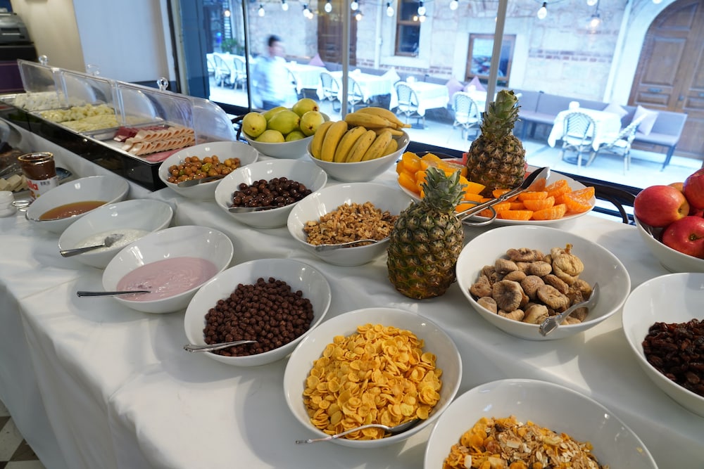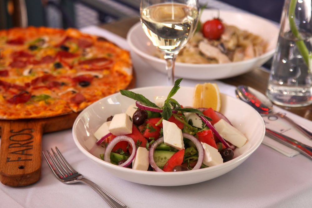 Indulge in culinary delights at Faros Restaurant, specializing in international cuisine, or grab a coffee at our café. Don’t miss our complimentary buffet breakfast served daily and end the day with a refreshing drink at the bar/lounge.