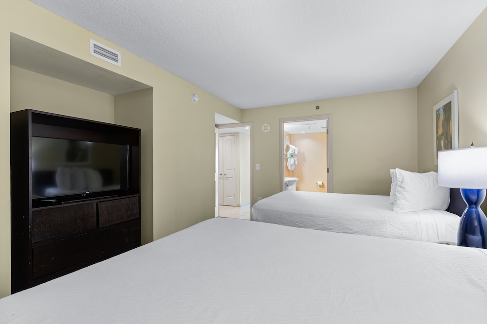 The room was great. I booked the 2 queen bed/partial ocean view room and it was more than I was expecting. The beds were in a separate bedroom and there was a living room/dining area, full kitchenette and even a washer and dryer. The room was very clean when we arrived and the stay was pleasant. I really liked that there was free beach chairs in our room available to use. Over all it was an excellent stay. The only downside is there was not much within walking distance like restaurants or shops, but it is a close drive to many Restaurants/attractions.