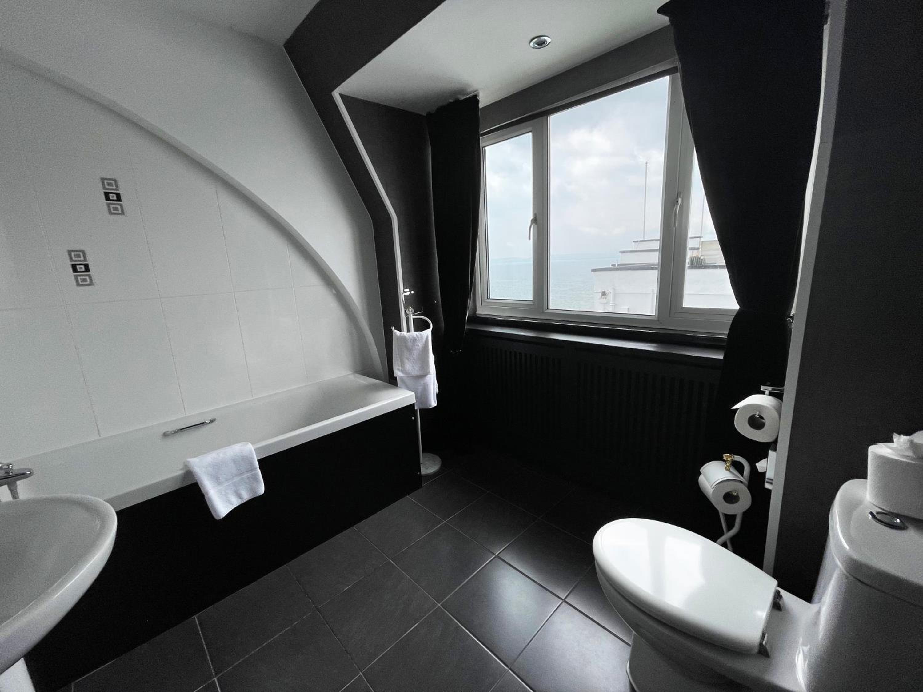Despite being on the sea front, our view was a brick wall.