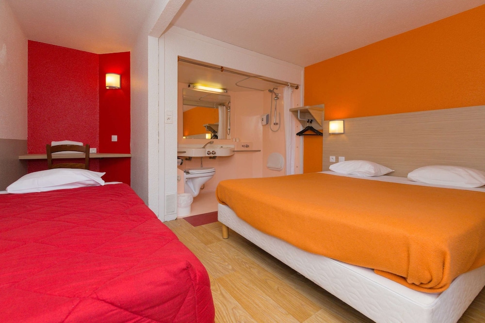 Je n'ai qu'un mot à dire : FUYEZ ! Cet hôtel est un désastre !!! Nous y avons séjourné juste histoire de se reposer après une nuit blanche et ava't de reprendre la route, c'était tout simplement une catastrophe. La chambre pue et est sale, des tâches et des traces de brûlé sur le couvre-lit, la salle de bain plein de traces de moisi, les toilettes dégueulasse. Et pour couronner le tout nous avons été réveillés par les dames de ménage à 11h alors que le départ est convenu à midi point bref je déconseille fortement cet hôtel, on peut n'avoir qu'une étoile sans pour autant négliger l'hygiène et la propreté..