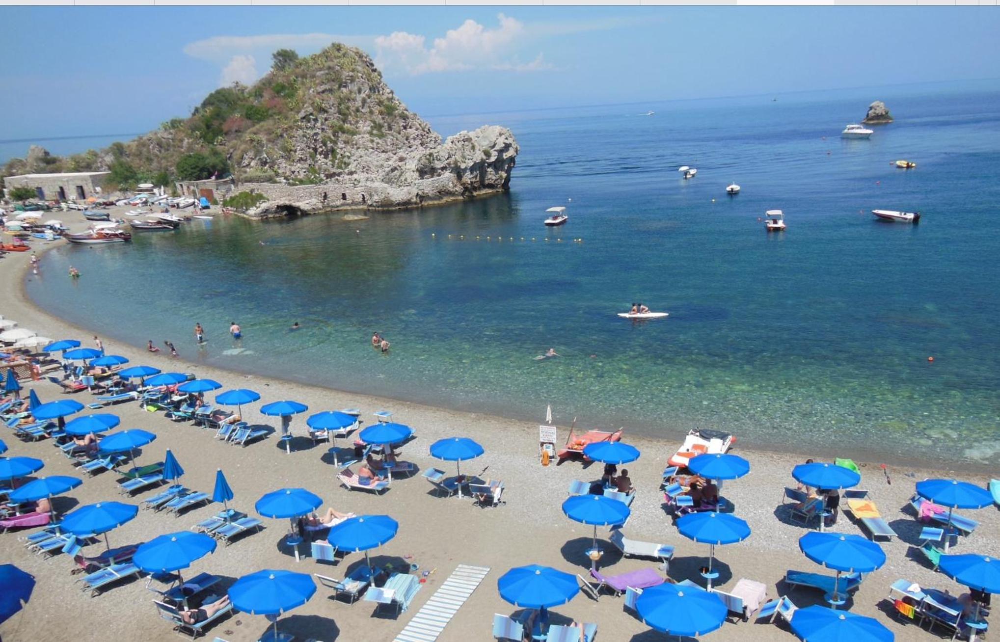 Emplacement exceptionnel : a deux pas de l’isola bella, et juste a coté du telecabine menant a Taormine, on ne peut pas mieux faire je pense. Vraiment pratique