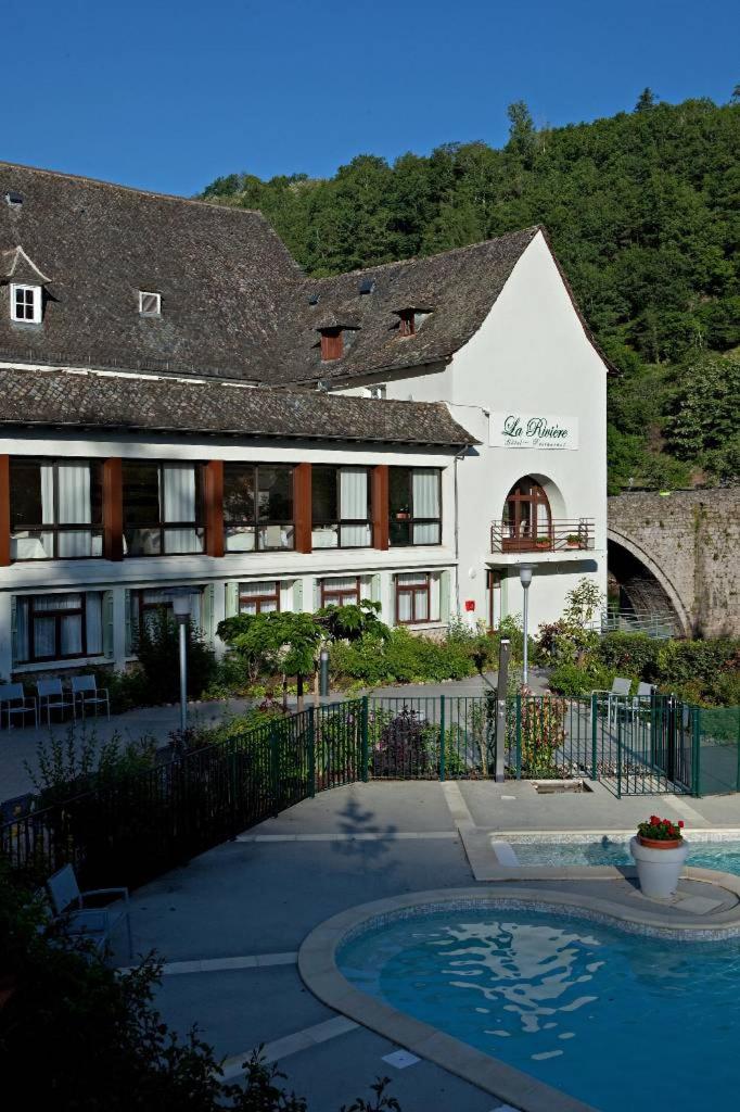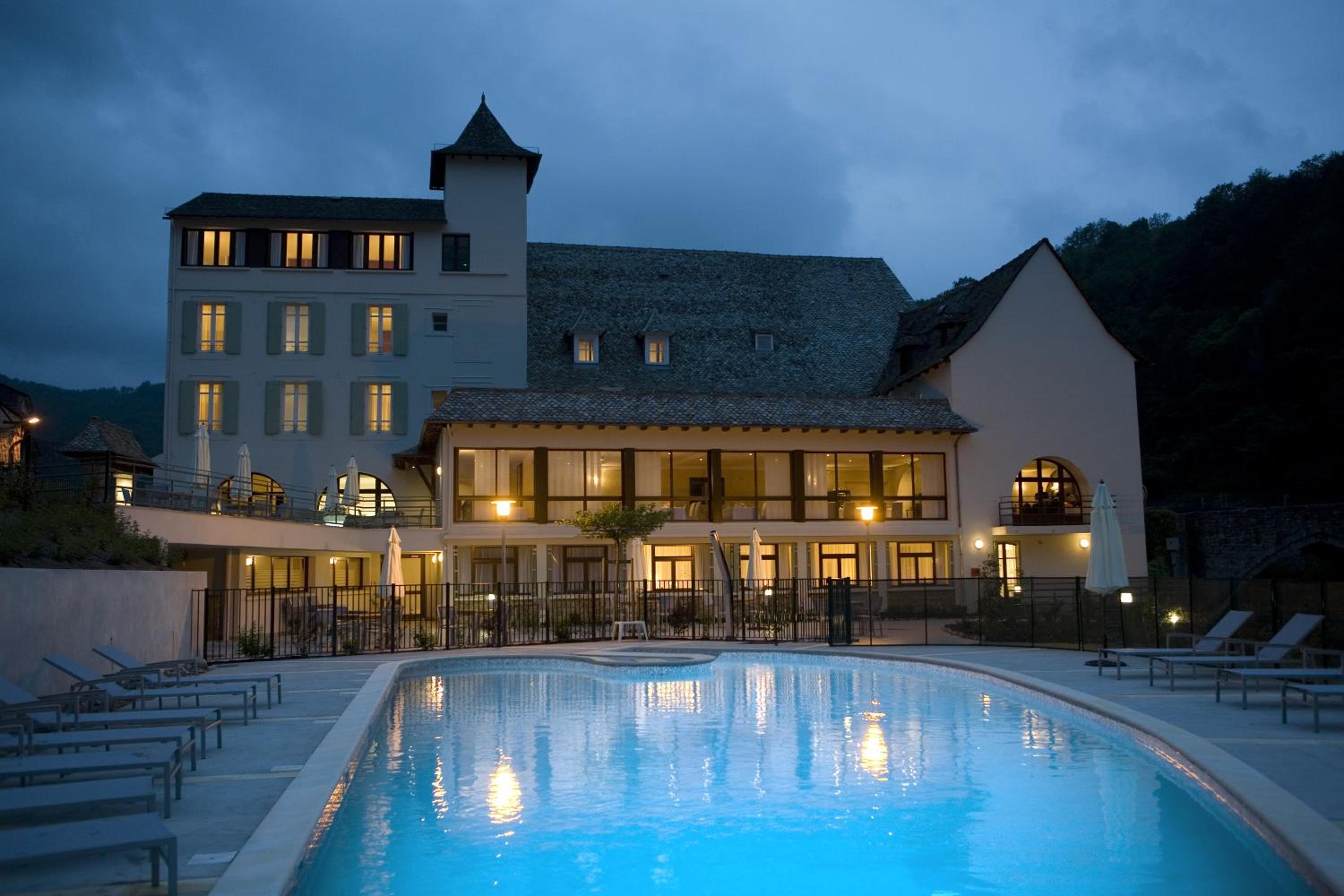 Très bel hôtel jouxtant le vieux pont et la rivière Truyère. Bon accueil, restaurant de qualité avec table extérieur sur le vieux pont piétonnier. Piscine agréable ou tout le monde trouve sa place. Garage sécurisé pour les vélos (nous sommes cyclotouristes et c’est important).