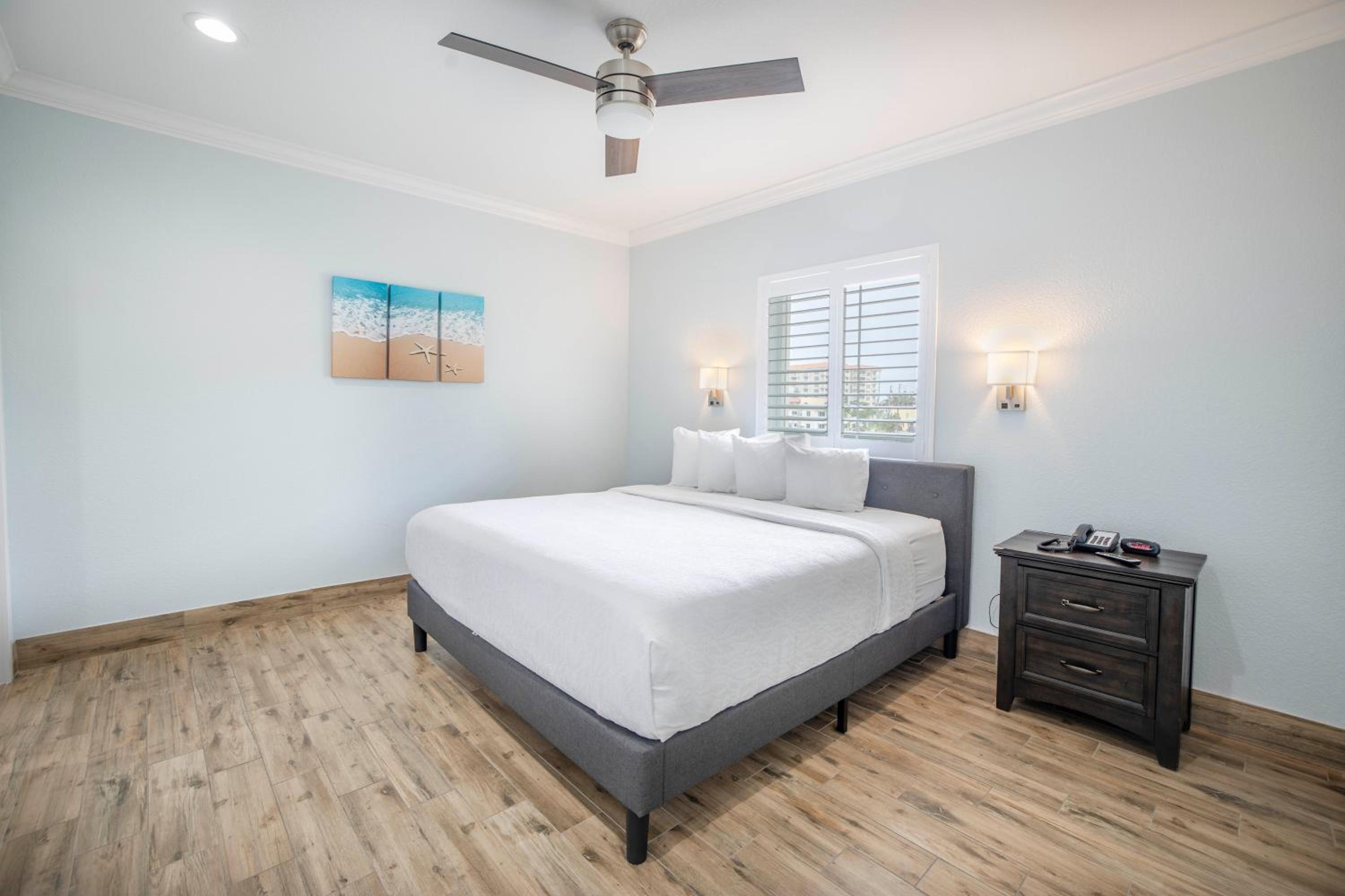 Convenient to the beach. Beach is very nice and not crowded. No restaurant. Room was very nice and clean. We would stay here again !