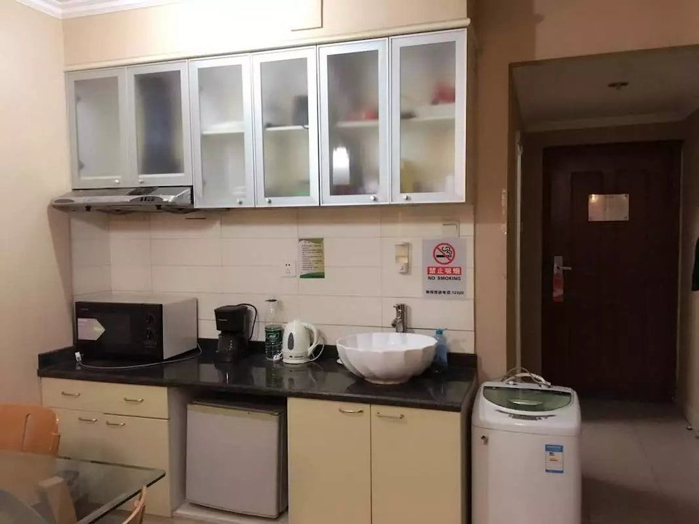 it was very pleasant, very nice staff, welcoming and tried very hard to meat my needs. But it was hard to explain myself because of language barrier. A great place to stay at an affordable price is the Beijing Sentury Apartment Hotel, with 300 rooms and suites on 23 floors. Accommodations range from a one bedroom with a king-sized bed to VIP business suites that will accommodate the lone adventurer, family vacation, or jet-setting businessperson and make them feel at right at home. Spacious and luxurious, the one bedroom suite allows for a separation of work and slumber with the outer room containing many amenities such as a kitchenette, but an added washing machine is a welcome bonus. The remaining six days of my stay were spent in a king-size bedroom with a kitchenette containing a microwave, mini-fridge, sink, plates, bowls with chopsticks, coffee maker, plenty of cabinets for any food items and a dining table with chairs. Rooms also have broadband internet connection, excellent air-conditioning ( a must for the summer), closets, reasonably sized bathrooms with showers, a big screen TV (with some international channels) and a wide bay window with an excellent view. If you have any problems with the internet, tell the front desk and they will send someone to your room ASAP to resolve your issue