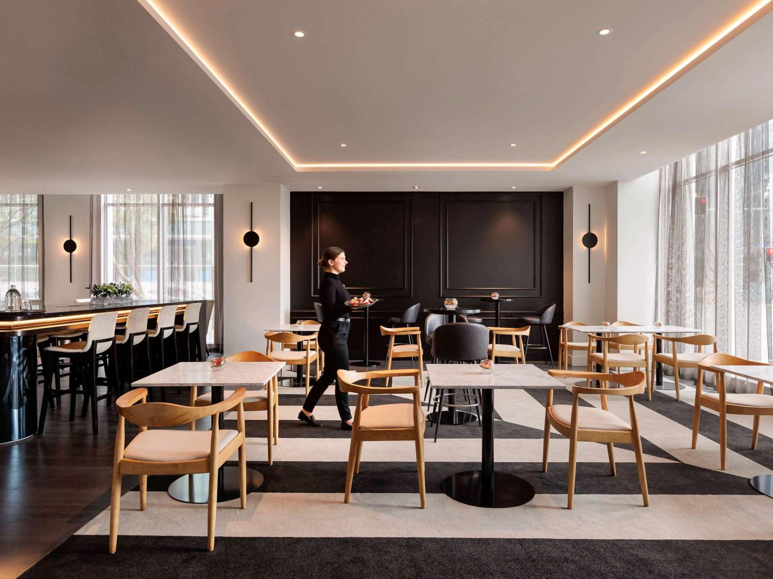 Experience captivating views of Viaduct Harbour Basin while indulging in exquisite dining at La Maree Restaurant and French Press Café.