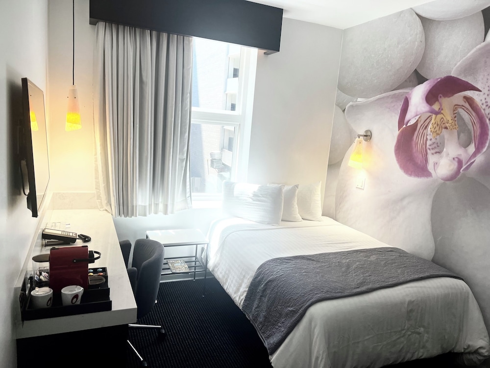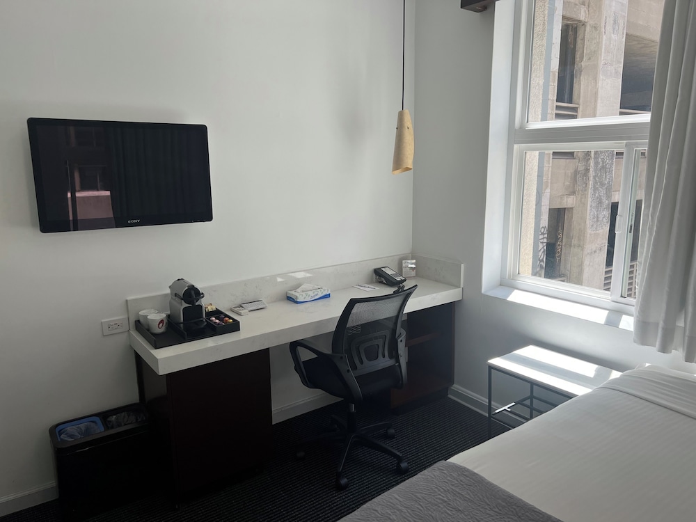 Cool hotel with very small rooms but awful outside with homeless people unconscious literally outside the front door.