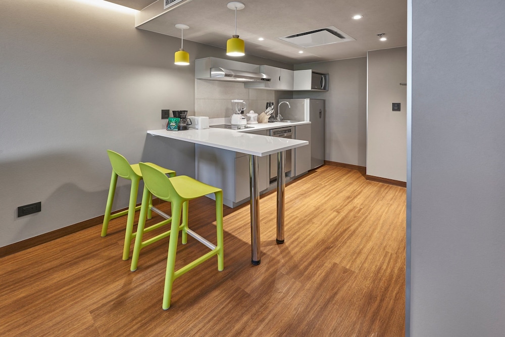 Las habitaciones me parecieron agradables, especialmente porque cuentan con cocina, y para quienes viajan en familia, tener dos cuartos es una gran ventaja. Sin embargo, el desayuno me pareció muy básico, y quienes son alérgicos al huevo prácticamente no tienen opciones. La limpieza también podría mejorar, ya que colocan la toalla para los pies junto a las toallas del cuerpo. Además, las alfombras necesitan una limpieza más profunda y deberían aspirarse a diario.