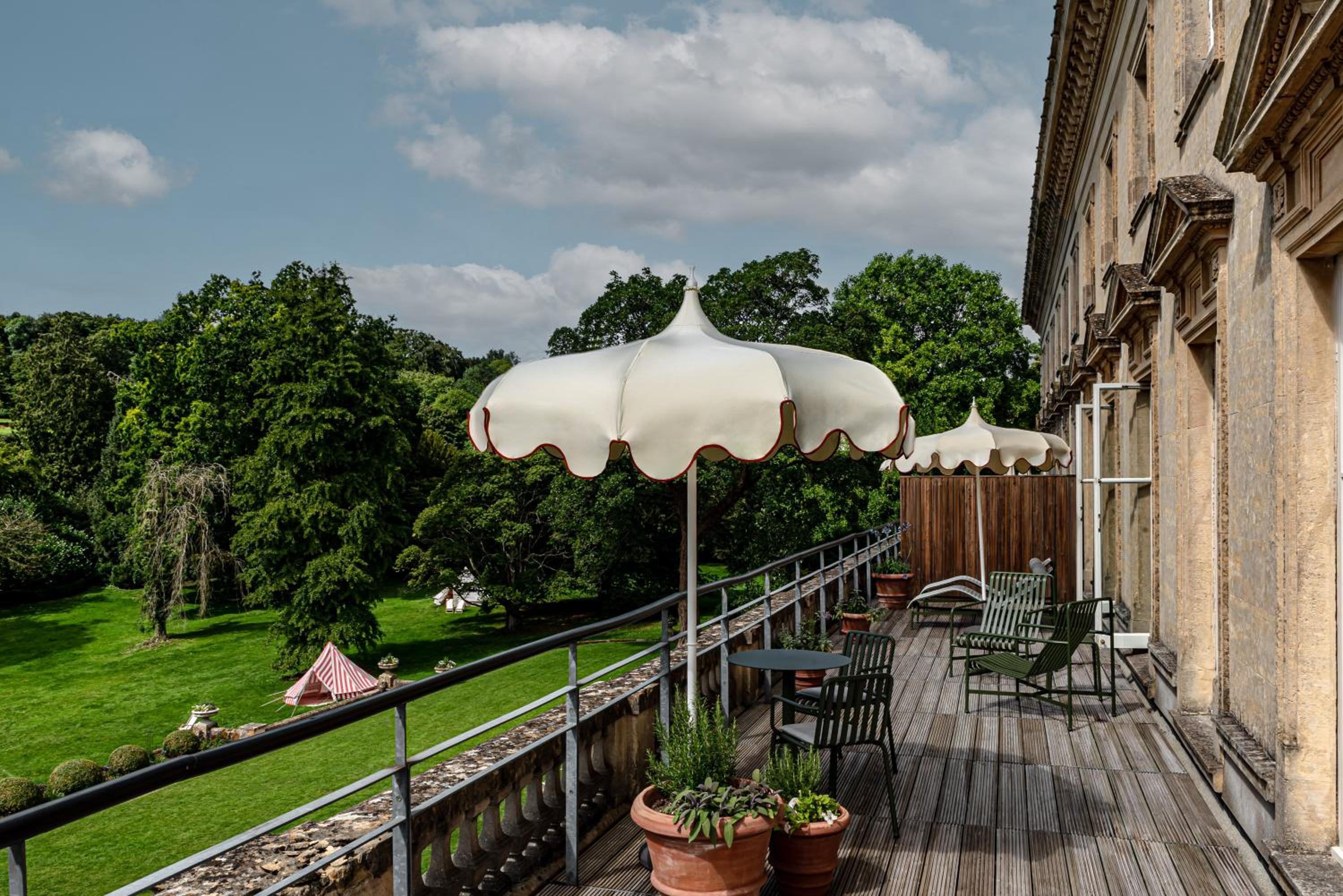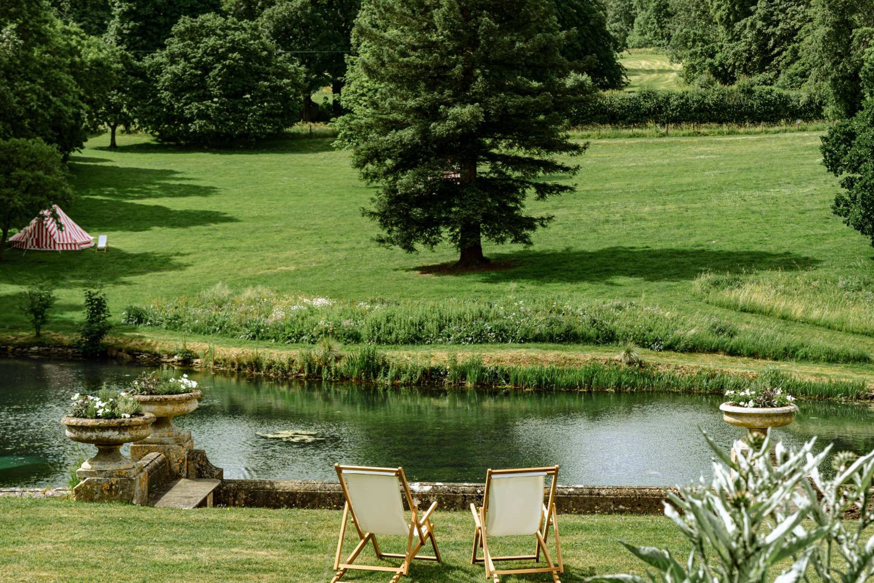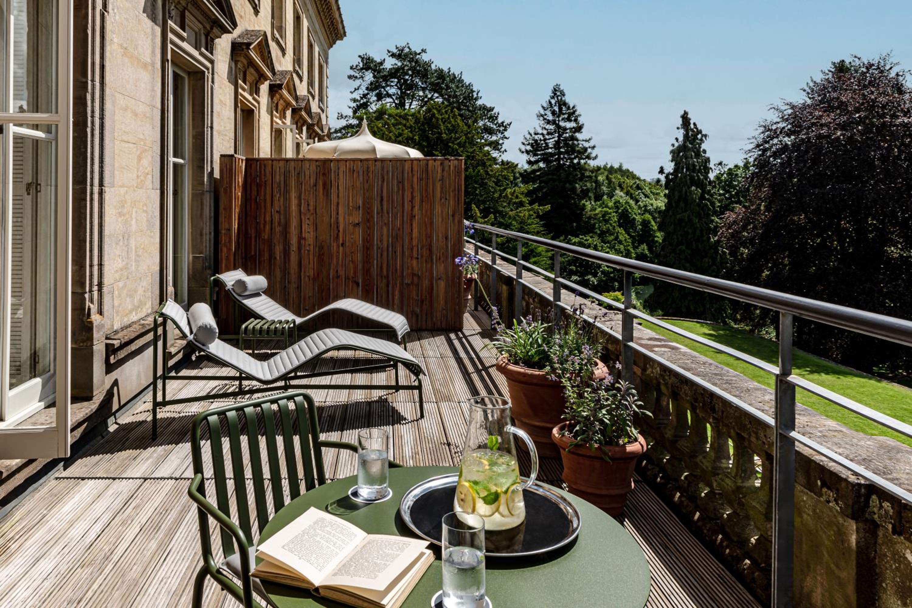 Experience the charm of Cowley Manor, where each room is a masterpiece with handmade furniture and fabrics by young British designers. Whether in the main house or the converted stable block, enjoy modern amenities like flat-screen TVs and luxury toiletries.