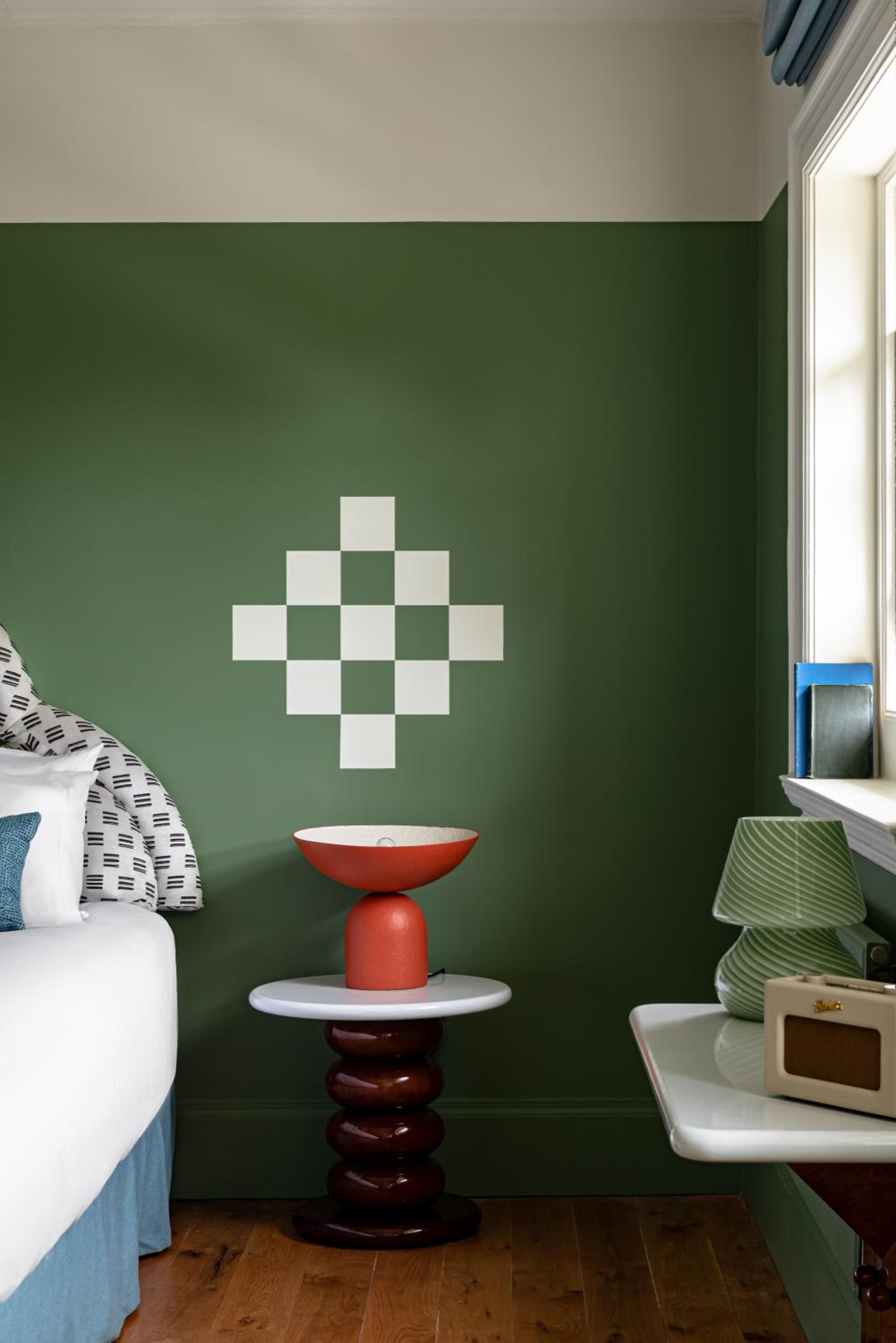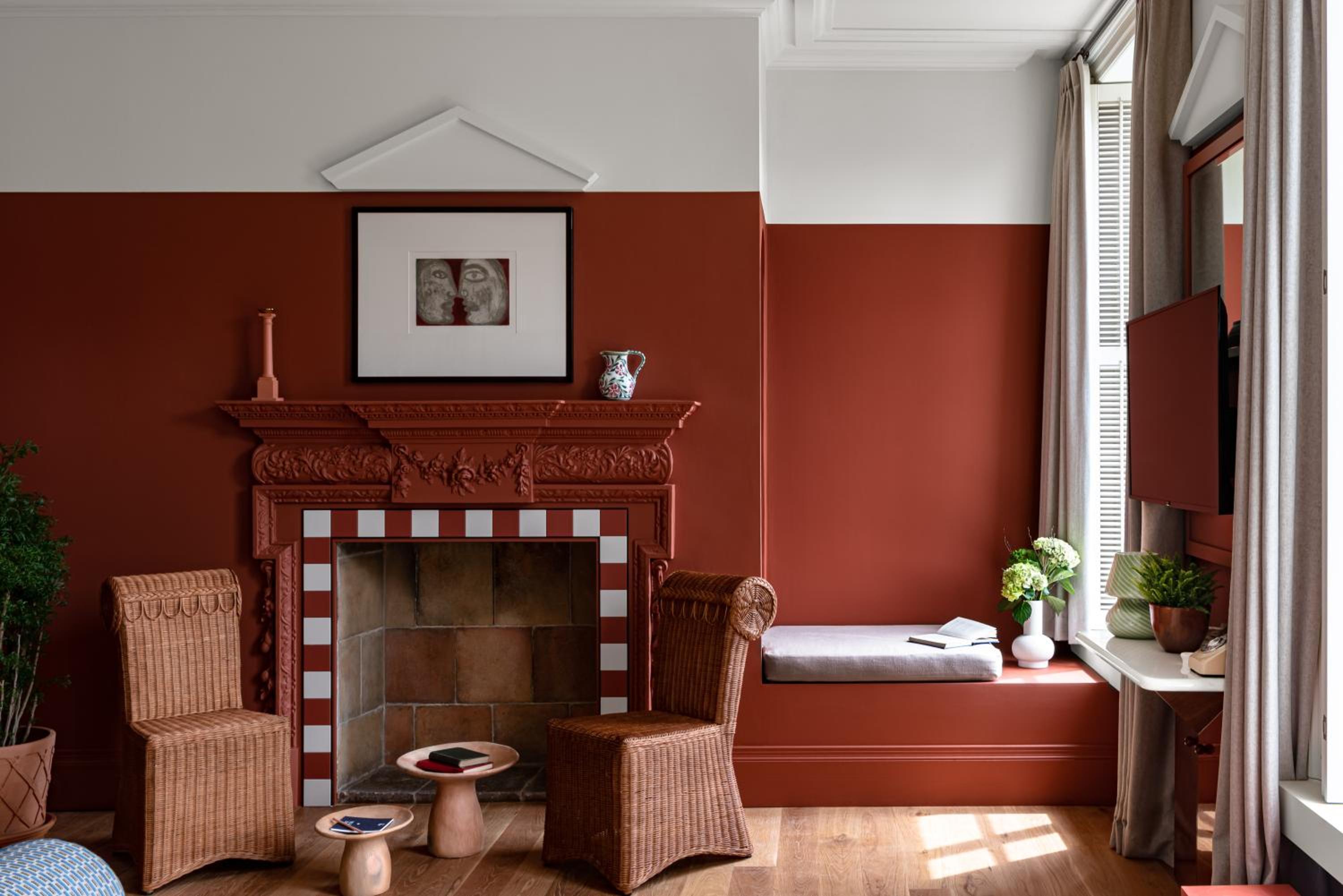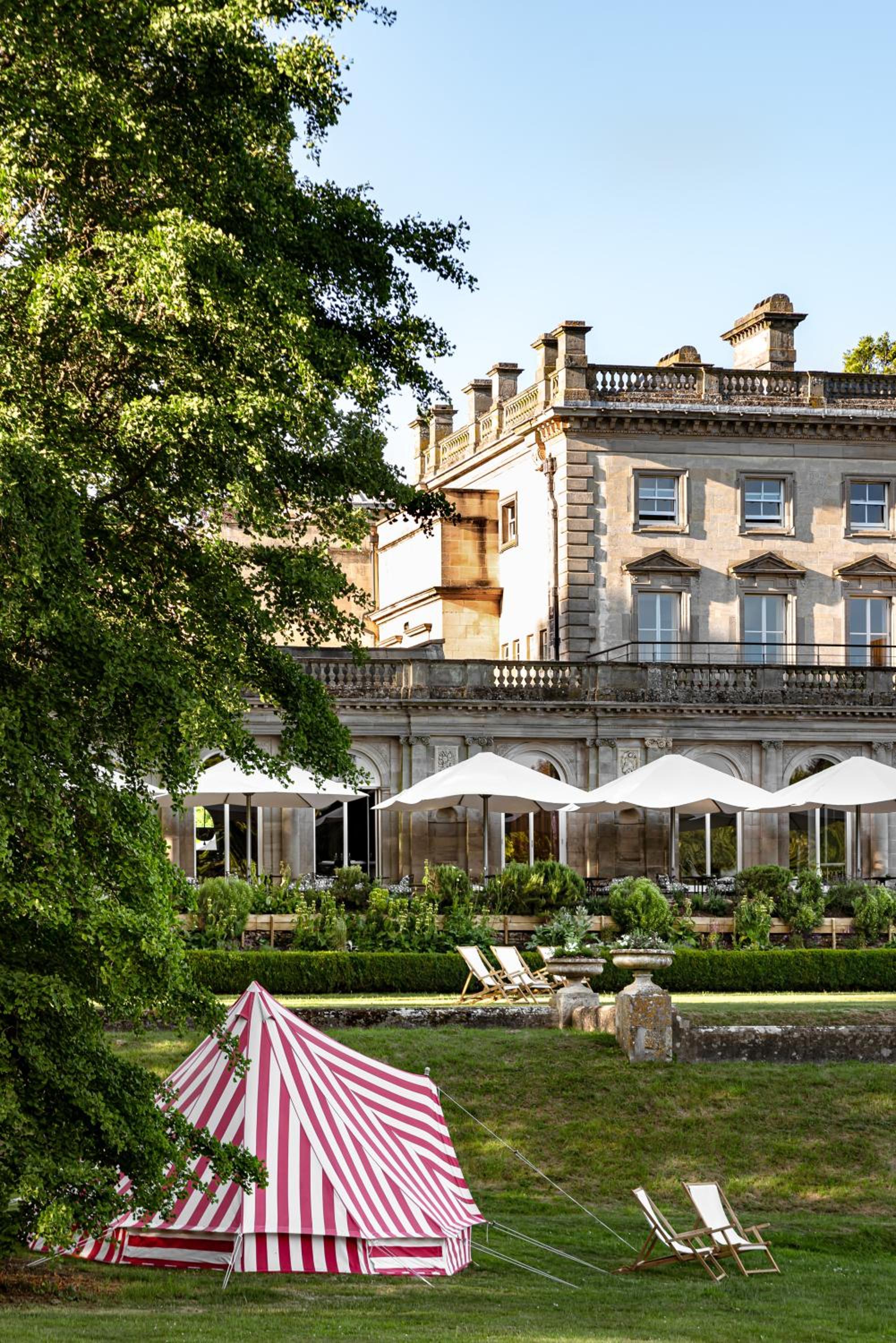 Experience the charm of Cowley Manor, where each room is a masterpiece with handmade furniture and fabrics by young British designers. Whether in the main house or the converted stable block, enjoy modern amenities like flat-screen TVs and luxury toiletries.