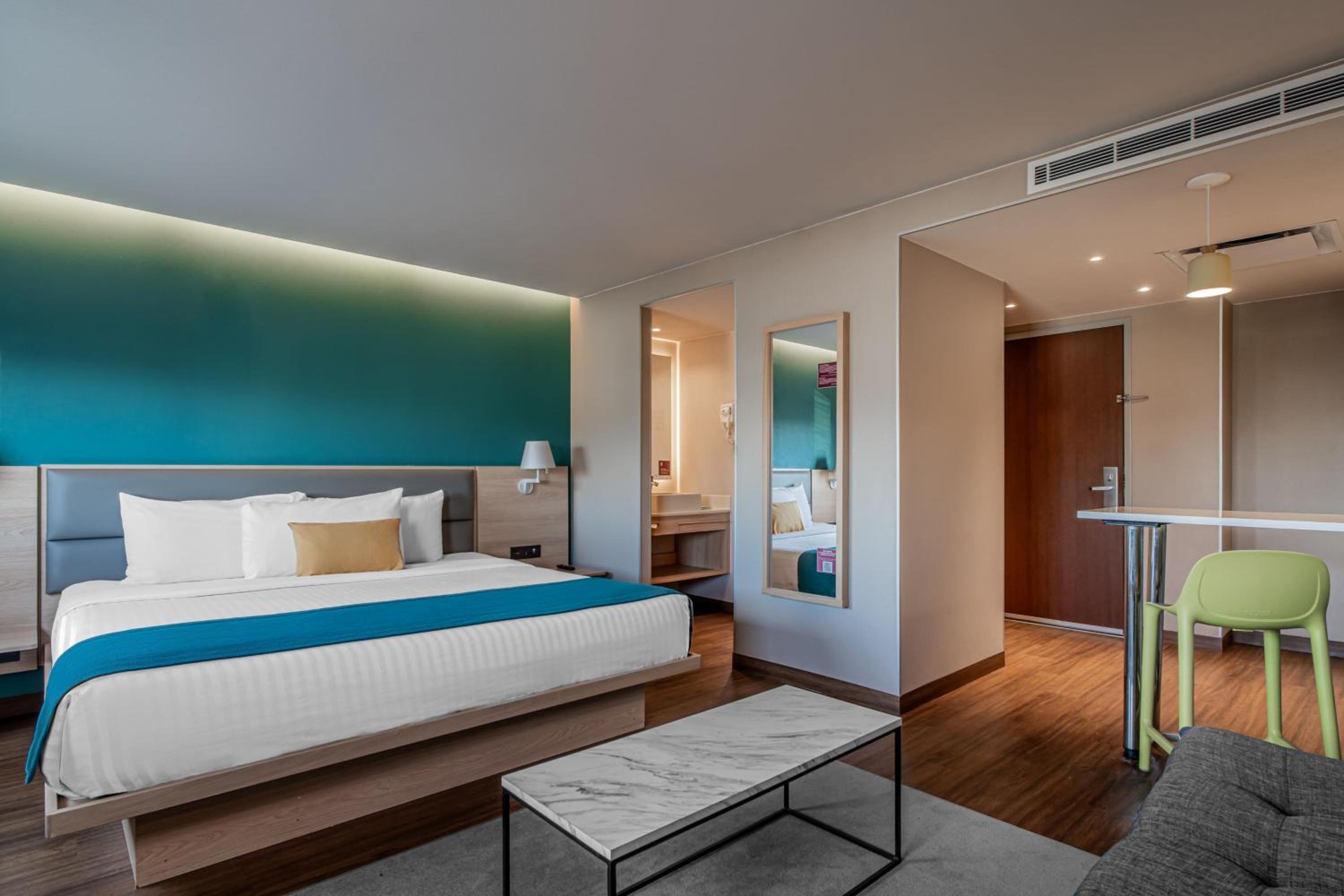 Book your stay at City Express Suites Querétaro for a blend of modern comforts and convenience. Enjoy the outdoor pool, free WiFi, and complimentary continental breakfast during your stay. Take advantage of the free shuttle service to explore destinations within 10 km. Unwind in rooms featuring modern decor, flat-screen TVs, and kitchenettes. With a 24-hour reception and fitness centre, your needs are always met. Conveniently located just a short drive from Querétaro Town Centre and the Business Park, this hotel is perfect for both leisure and business travelers. Don't miss the chance to experience all that City Express Suites Querétaro has to offer.