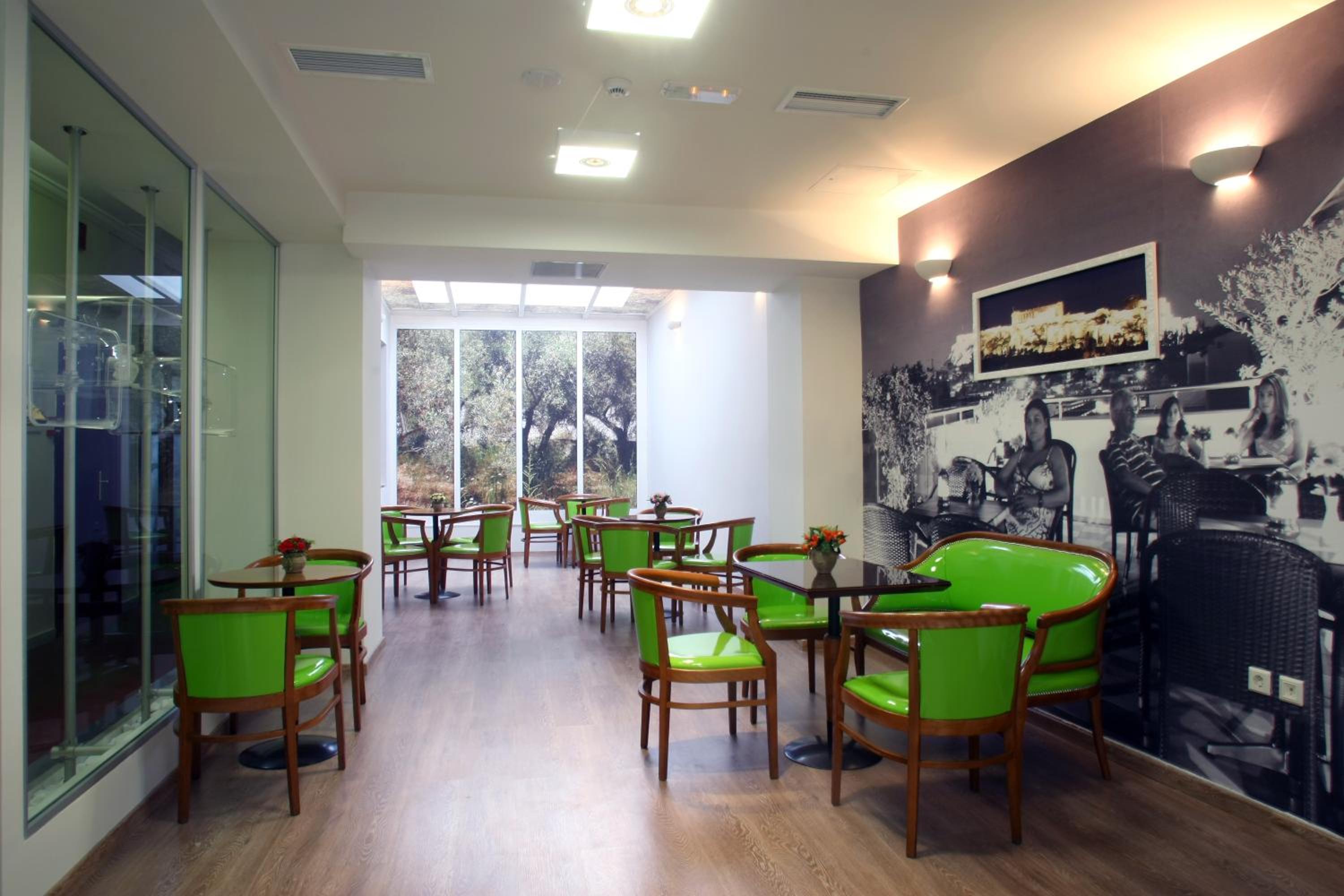 Sehr freundliches und lösungsorientiertes Personal, gute Frühstück, sehr gute Lage in unmittelbarer Nähe zur Metro, gute Anbindung an den Flughafen, Roof top bar mit wunderbaren Blick auf die Akropolis