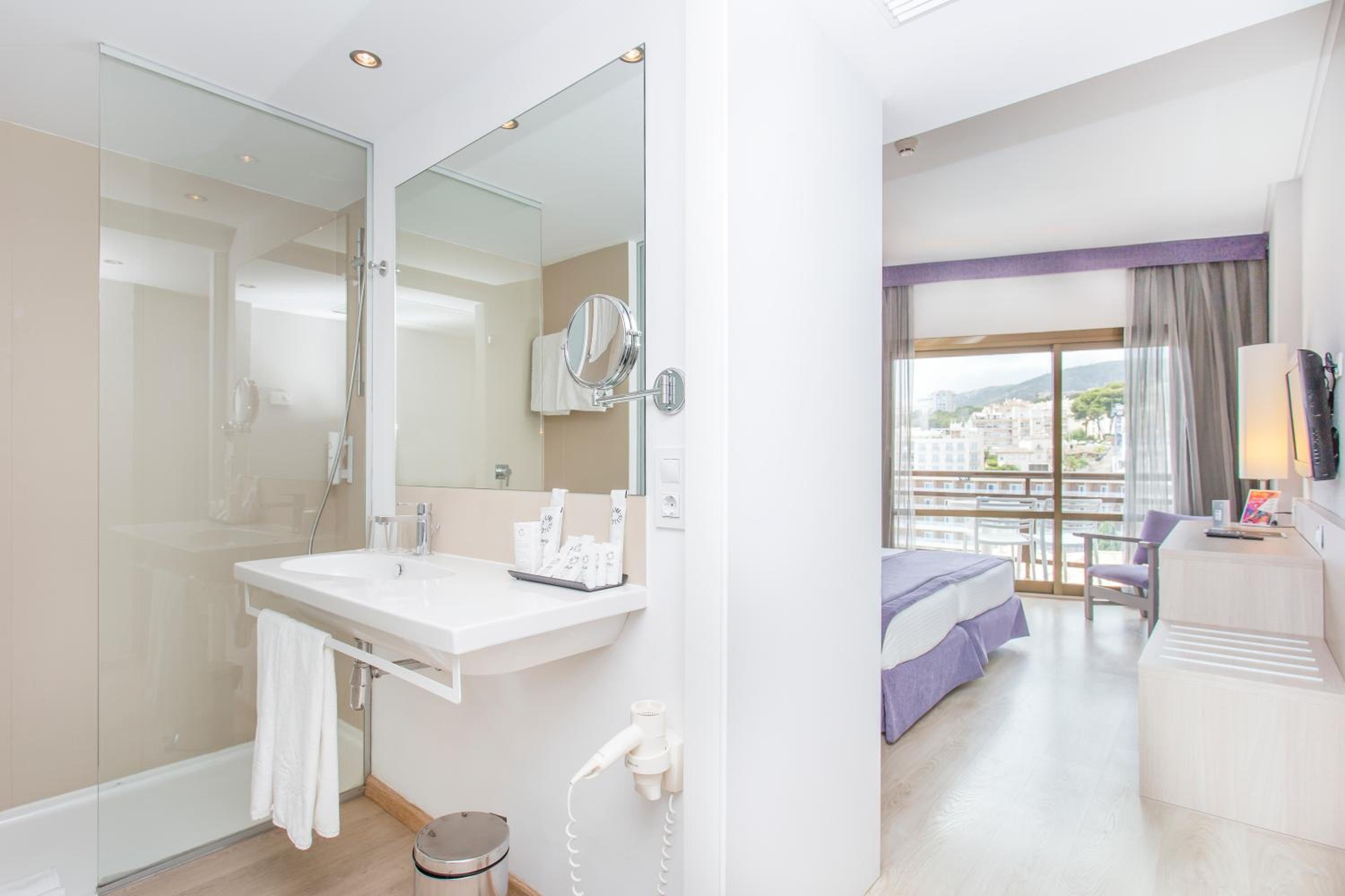 Hotel Be Live Adults Only Marivent offers a serene escape with outdoor pools, a gym, steam baths, and a Finnish sauna for ultimate relaxation. The modern air-conditioned rooms feature a flat-screen TV, while the beachfront location adds to the tranquil ambiance.