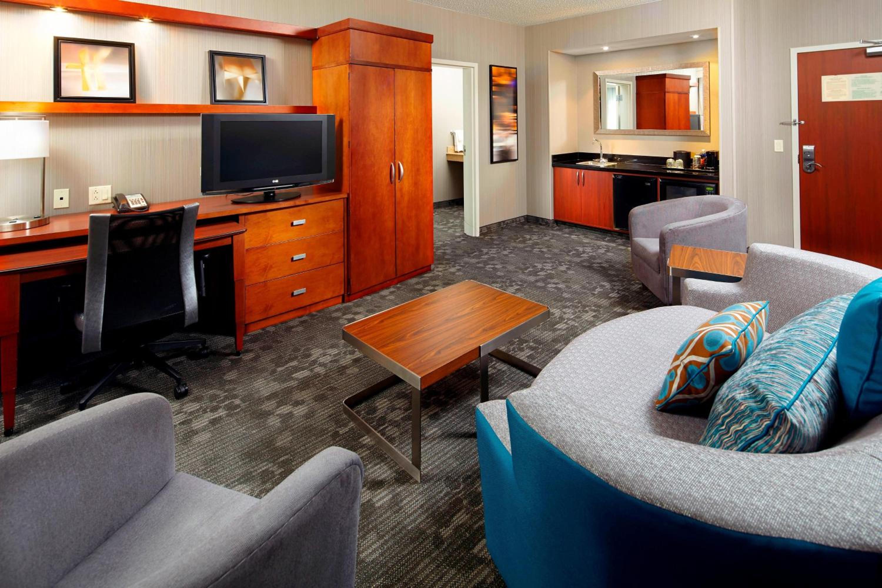 Experience comfort and convenience in our air-conditioned rooms at Courtyard Pittsburgh Greensburg. Enjoy free Wi-Fi, a flat-screen TV, a living area, work desk, mini-fridge, and coffee/tea facilities.