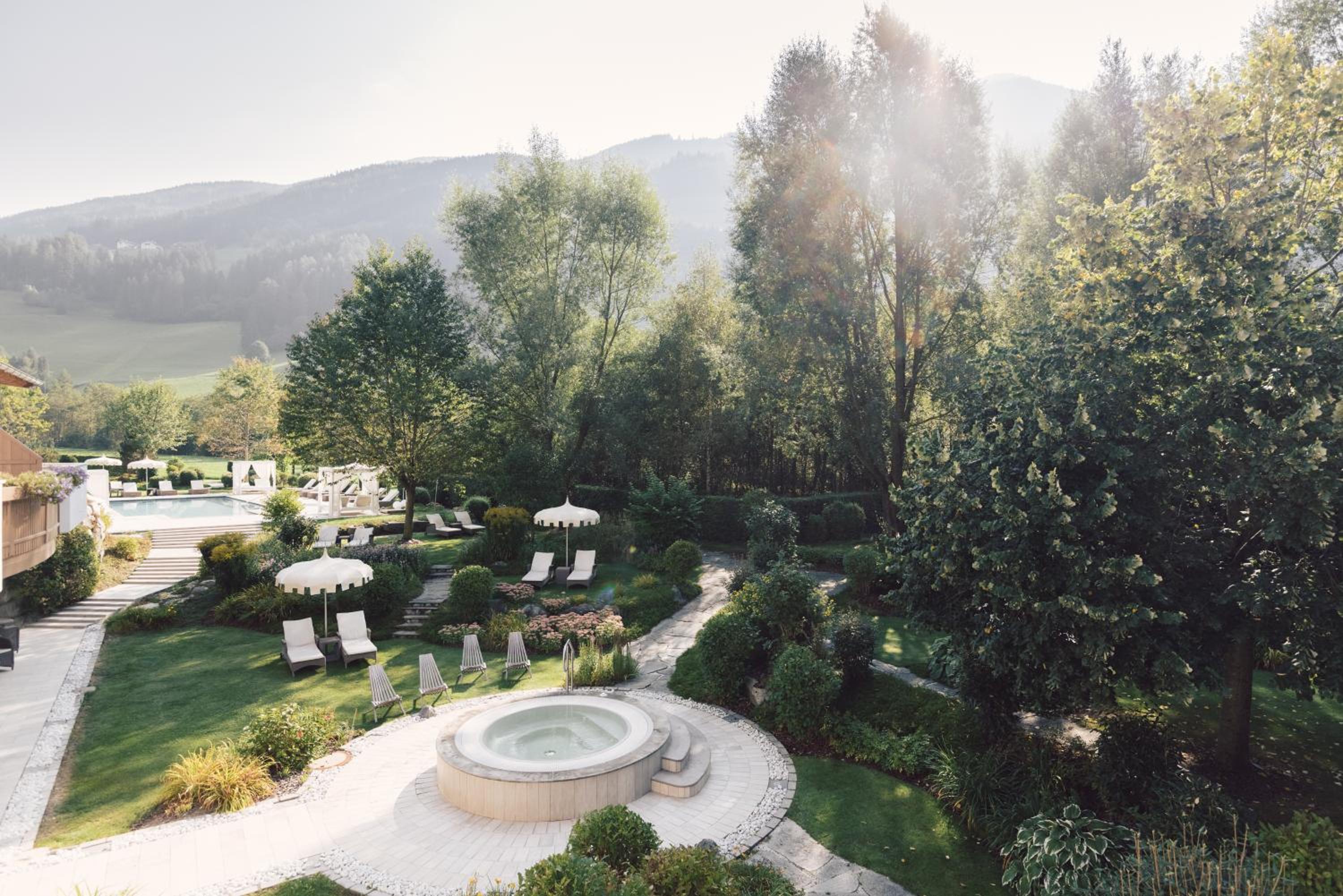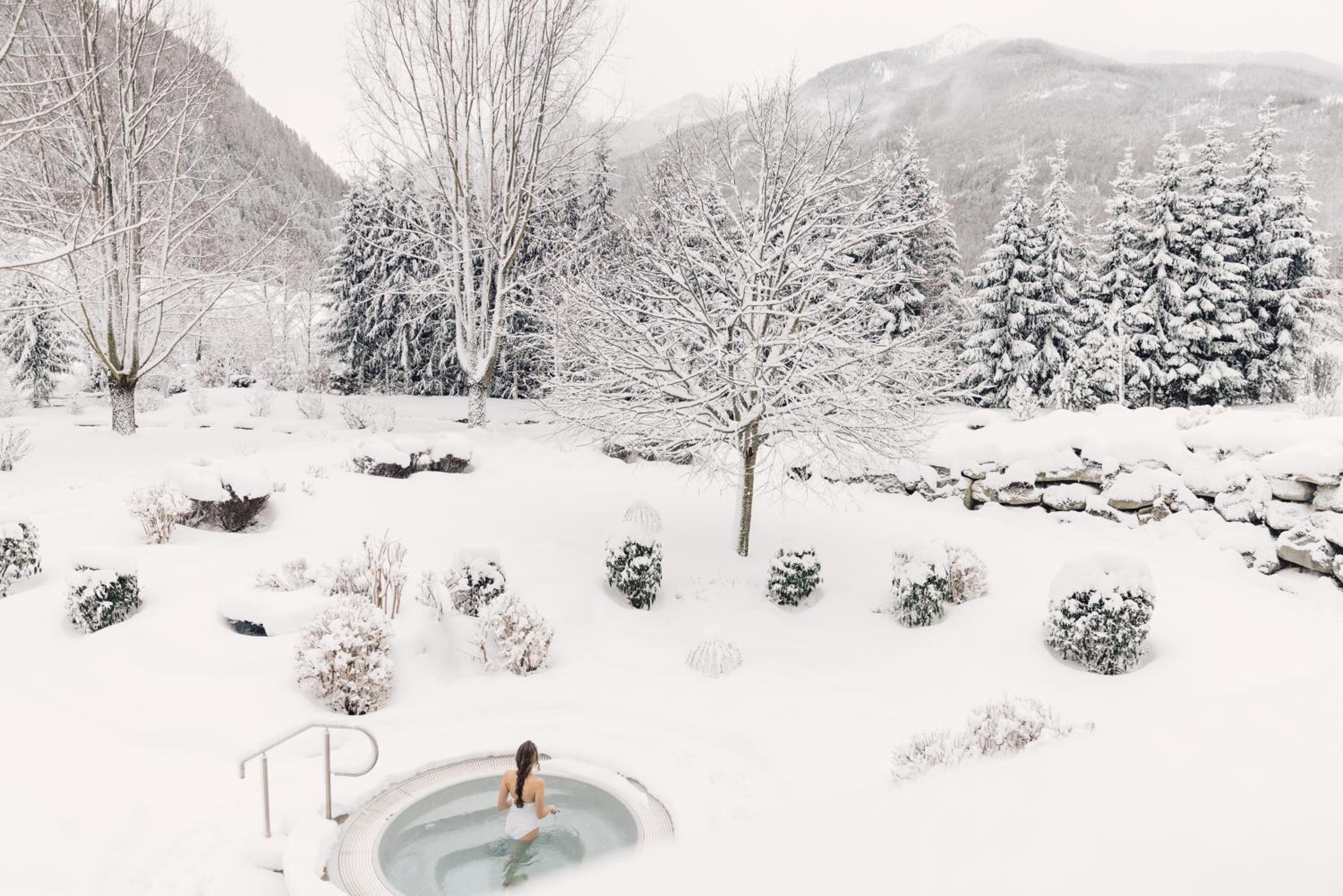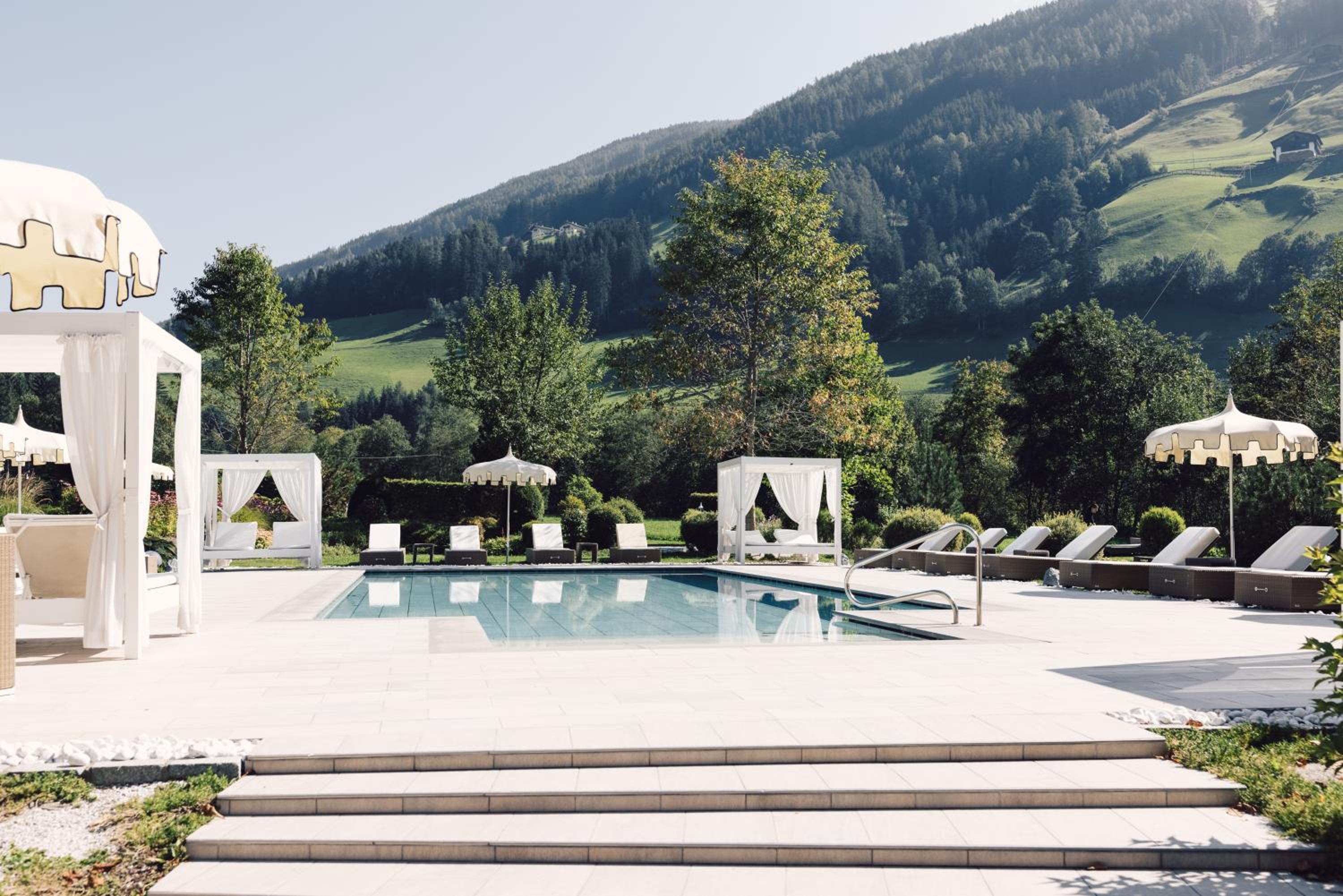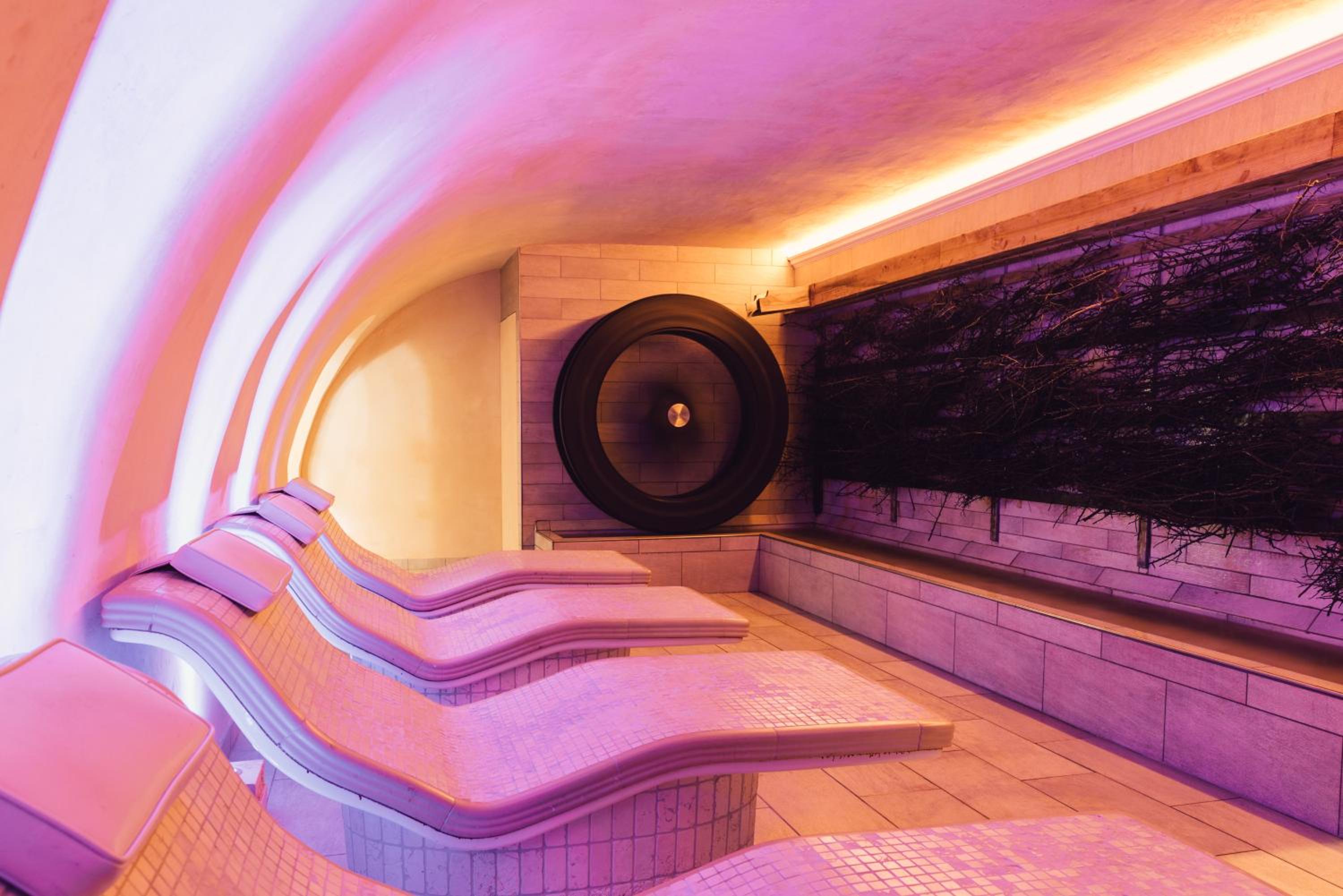 Wellness Paradise: Indulge in the large wellness centre with indoor and outdoor pools, and a terrace with stunning Alpine views.