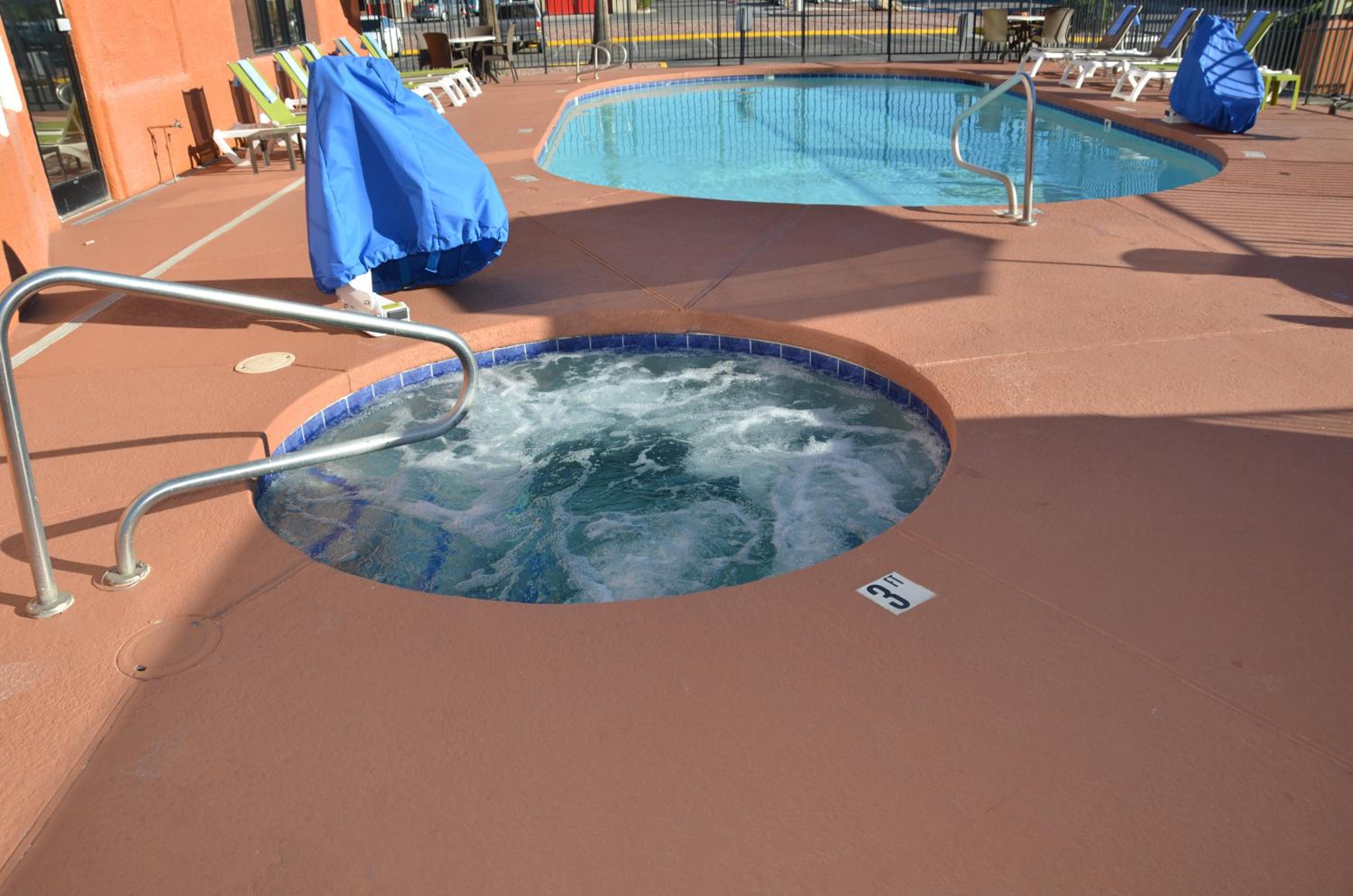 Enjoy a relaxing stay at our pet-friendly hotel with an inviting outdoor pool and hot tub, perfect for unwinding after a long day of travel or exploring Tucson.