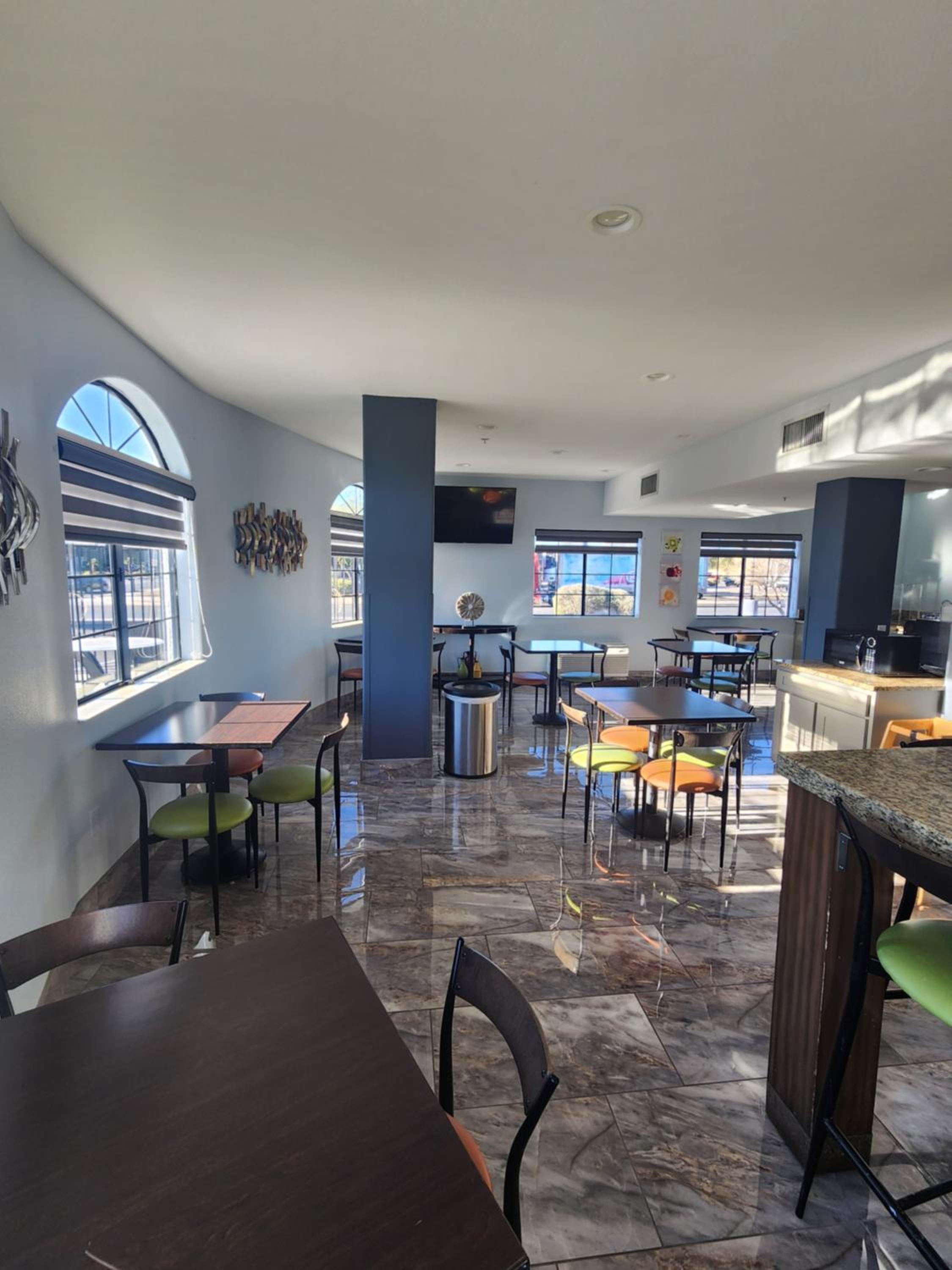 Start your day right with our grab-and-go breakfast and stay connected with free Wi-Fi in every air-conditioned room. Our spacious accommodations also feature essential amenities like a microwave, refrigerator, and coffee maker.