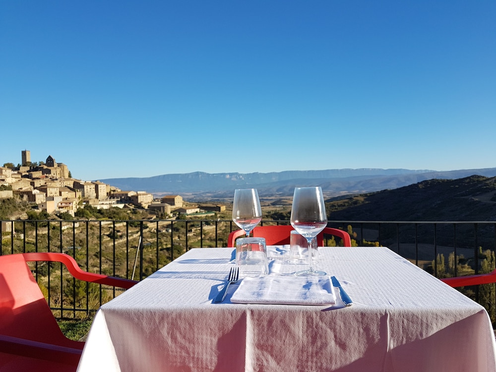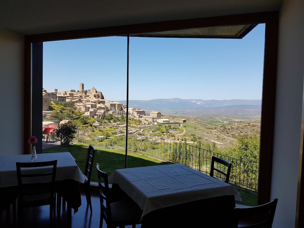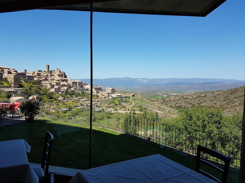 La vista del pueblo y el valle son espectaculares. Tiene una terraza junto al comedor muy agradable y zona de aparcamiento. No está en el centro del pueblo pero hay solo unos 300 metros. La habitación tiene un tamaño correcto y una ubicación excelente. El personal es muy amable.