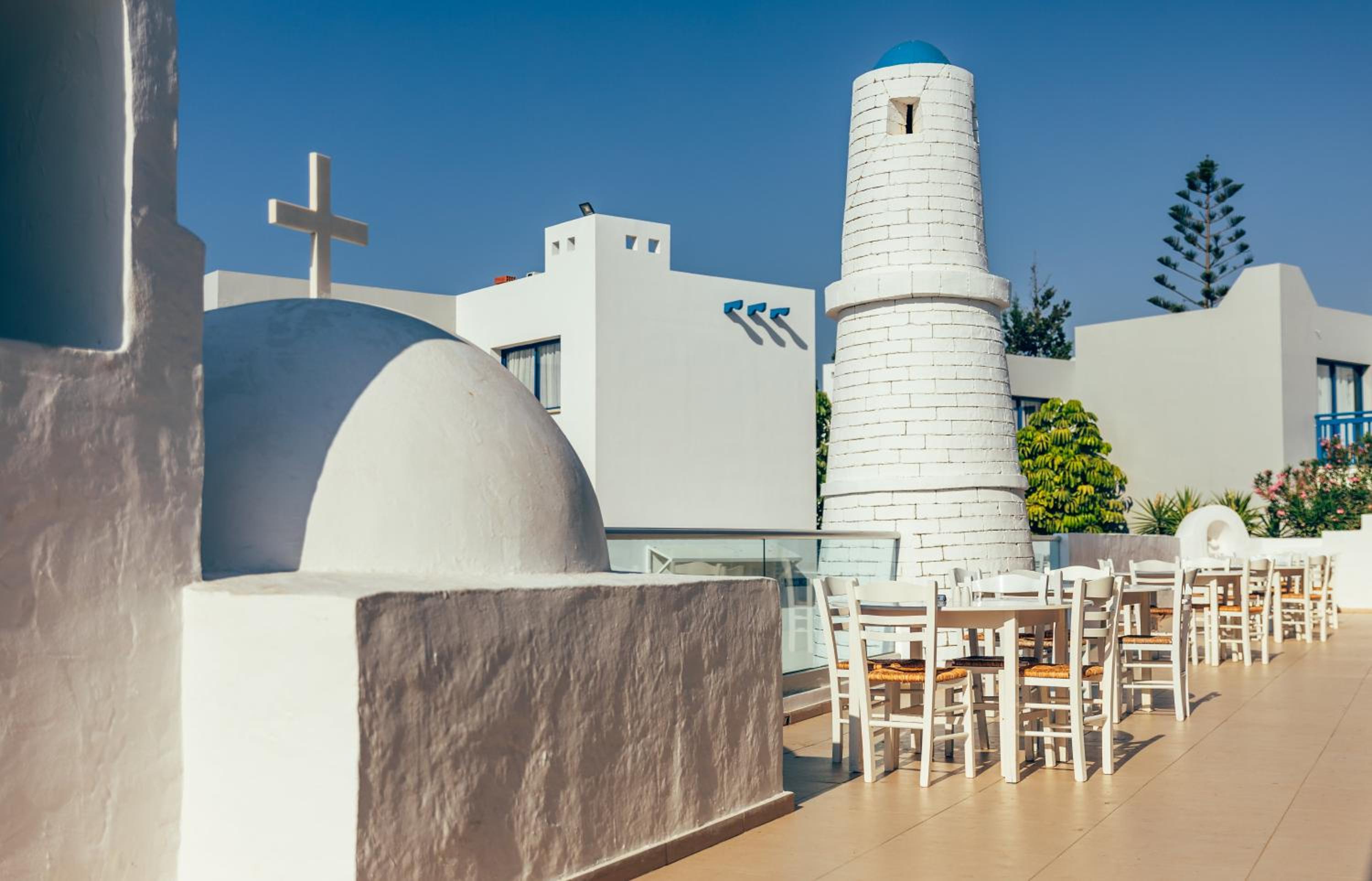 Indulge in a buffet breakfast and savor Greek and international cuisine at the on-site restaurant. For leisure, enjoy the entertainment staff, sun terrace, and activities like hiking and cycling.