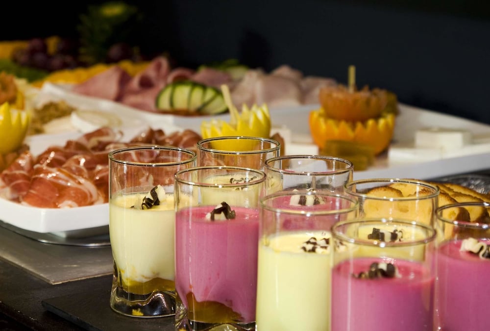 Indulge in local flavors at La Tramoya, our exquisite restaurant, or grab a quick coffee and snack at our cafe. Enjoy a variety of beverages at our two lively bars, ensuring a delightful dining experience at any hour.