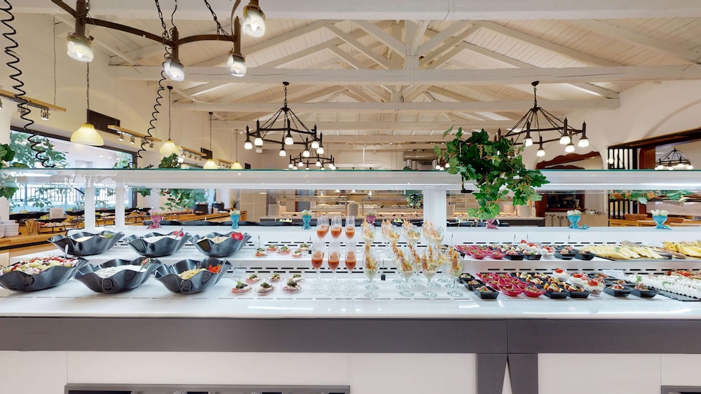 Very beautiful buildings, beach and surroundings. Very friendly and professional staff. Only less than perfect issue is food. We had half board, both breakfast and dinner were buffet style. Variety was good and quality ranged from bad to very good depending on the dish. Fish was over cooked, very few beef dishes in the 4 days we stayed. In breakfast there was no true ham (only reformed spam like) and same for bacon(reformed from small pieces of meat and fat). All the vegetables were excellent and the variety was impressive. Some dishes were very good so I am sure the standards of cooking can be improved across the range.