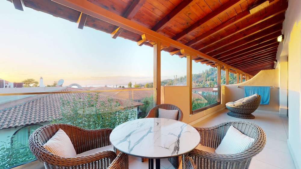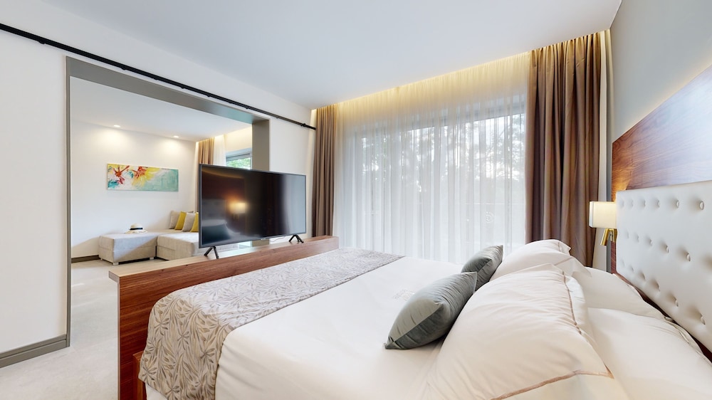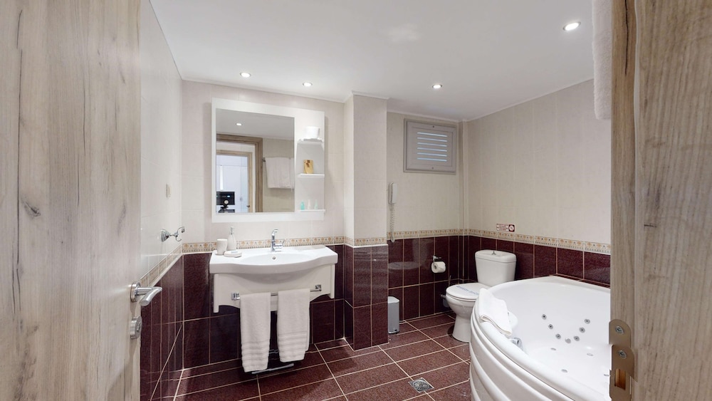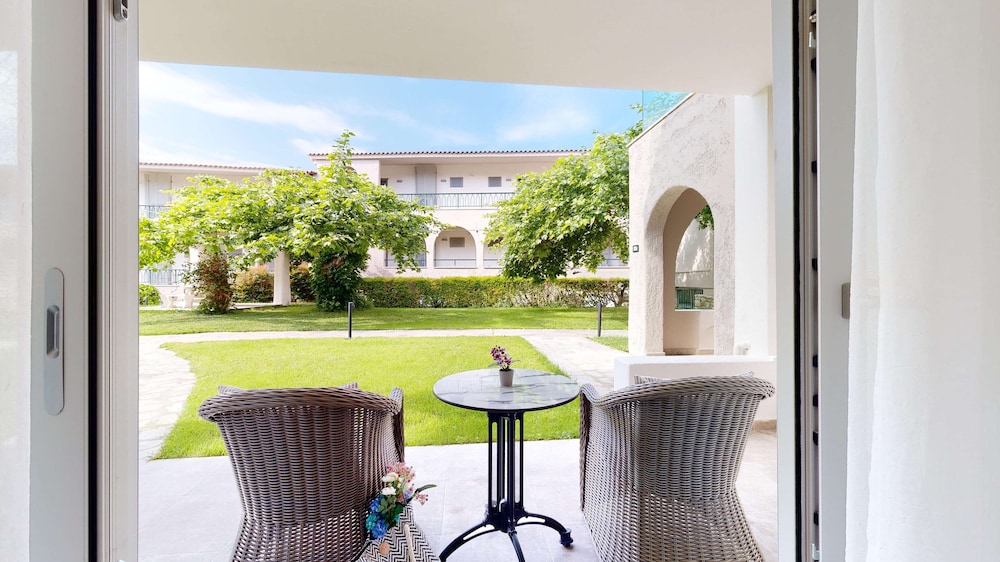 It was a fantastic stay at for our family of four. We had a Armonia room with pool overview and partial sea view from our balcony. The room was very nice and spacious, AC in both main bedroom and the sofa bedroom, which was separated with a glass door. Even though almost all of the rooms were occupied there was lots of space in and around the pool. Fantastic to have reserved sun-beds for each room and a pool bar just for our pool. Anastasis in the pool bar was excellent and provided great service and beverages throughout our stay!