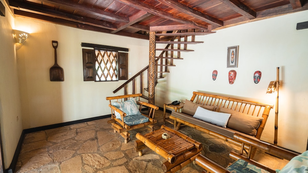 Cons: no AC (although the breeze from the ocean almost made up for this), slippery stairs due to the highly polished wood, wimpy pillows (we actually added the two from the beds upstairs), and a long bumpy drive on dirt road for the last few kilometres to get there. The outside toilet was swarmed by ants at night which may also be off-putting to some. Thus was not an issue during the day.