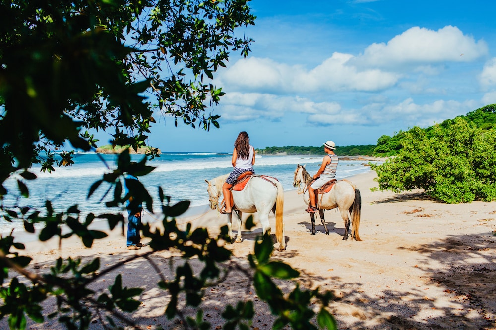 Pros: on the beach, no crowds, amazing staff (especially Mario and the other young bartender/waiter whose name we never caught), horses, privacy, and good food.
