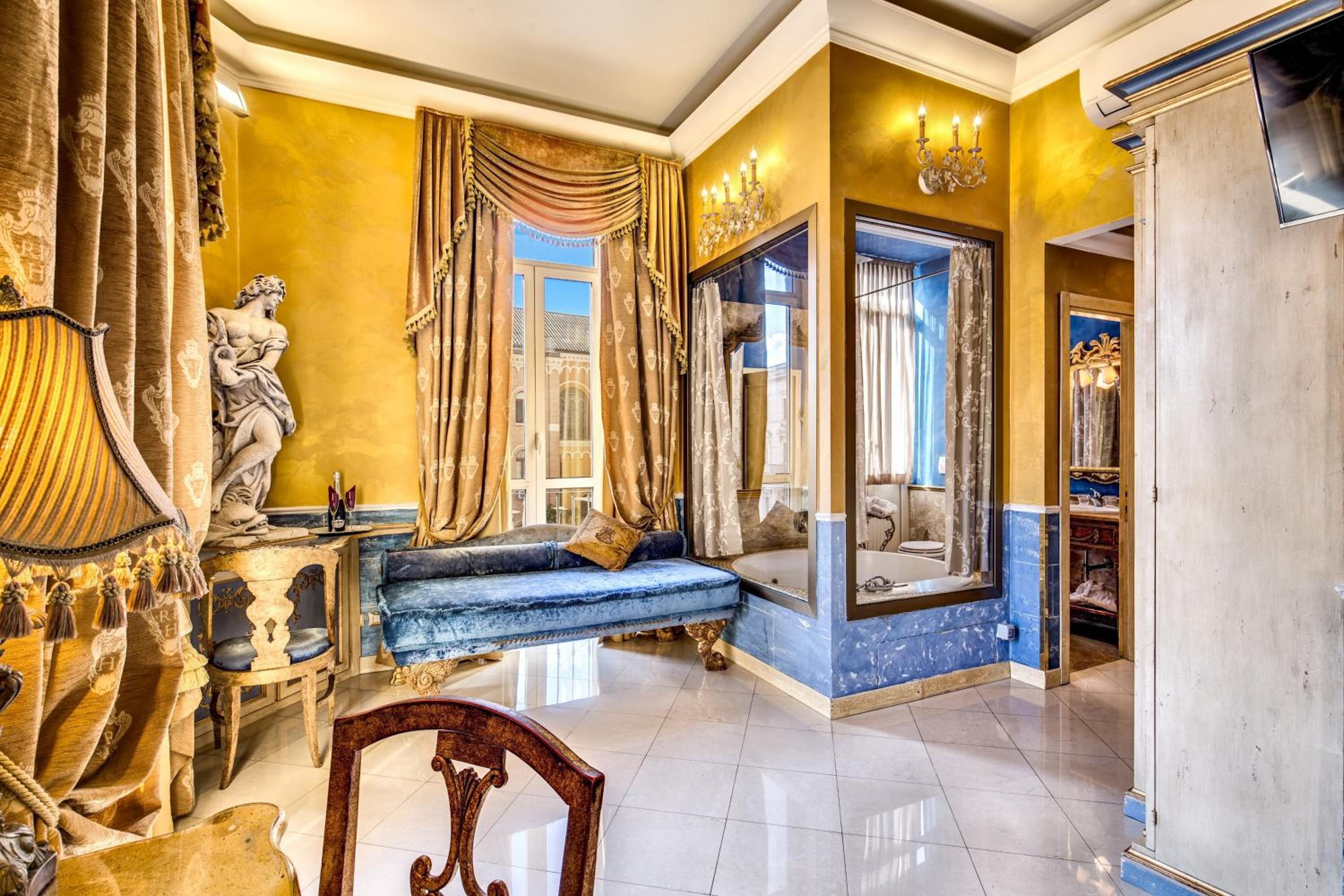The Romanico Palace Luxury Hotel & SPA offers a lavish experience with its imperial style and elegant furnishings. Luxurious Rooms and Amenities include marble floors, antique furniture, and fine-marble bathrooms with spa baths. Wellness Oasis awaits with a gym, sauna, Turkish bath, and spa services. Indulge in a Breathtaking Breakfast served daily on the rooftop terrace overlooking Rome. Conveniently located near the Spanish Steps and the American Embassy, with easy access to the city center. Book now for an unforgettable stay at Romanico Palace!