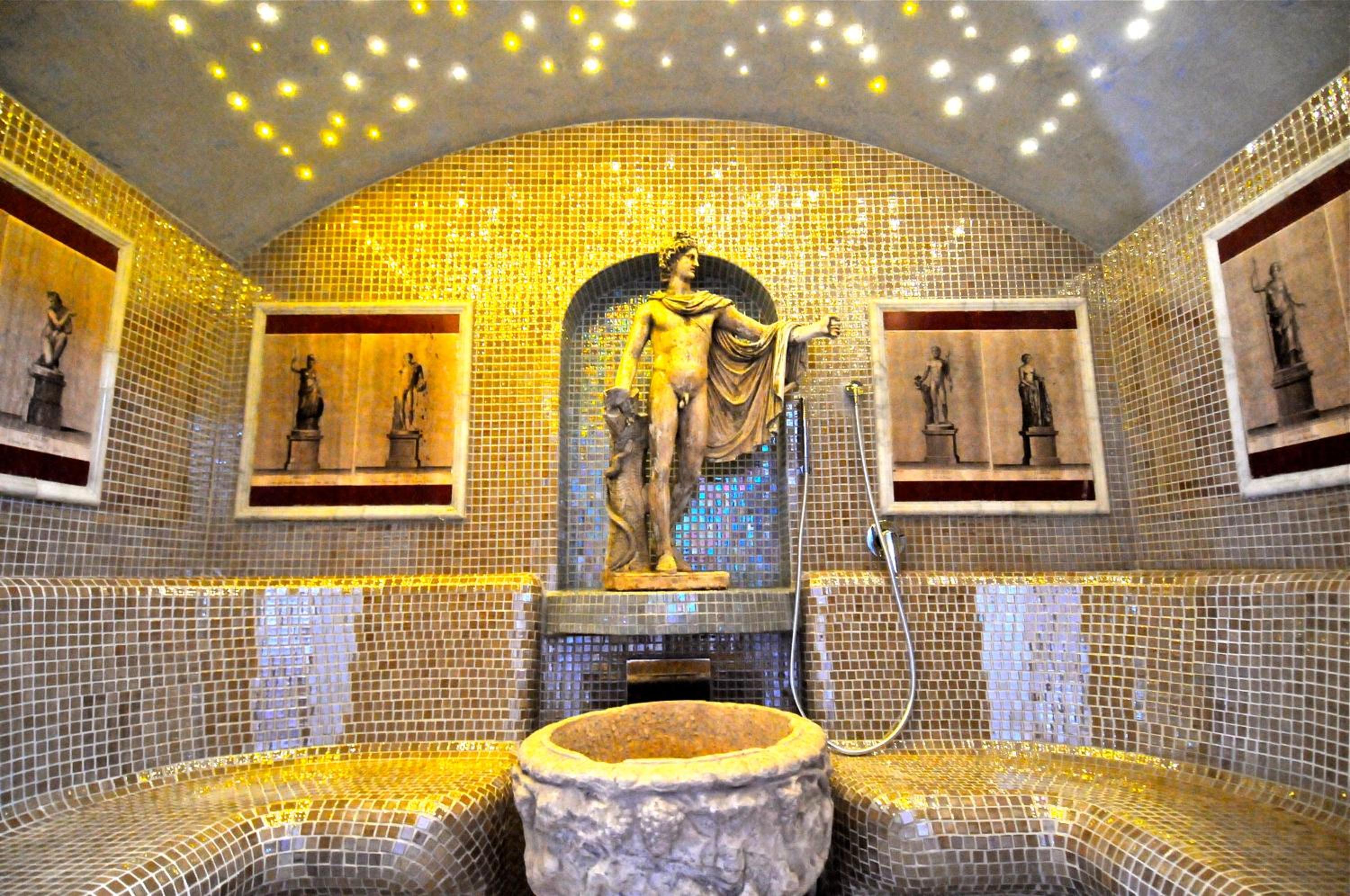 We booked this hotel because it advertised a swimming pool. There is NO swimming pool.It costs 75 euro to use spa for 2 hours,it has a plunge pool,and a steam room.sauna wasn't working and no Turkish bath as advertised. It was also not heated properly, we were freezing walking around in our swimsuit.also shower ran cold very quickly. Extortionate price for what is offered