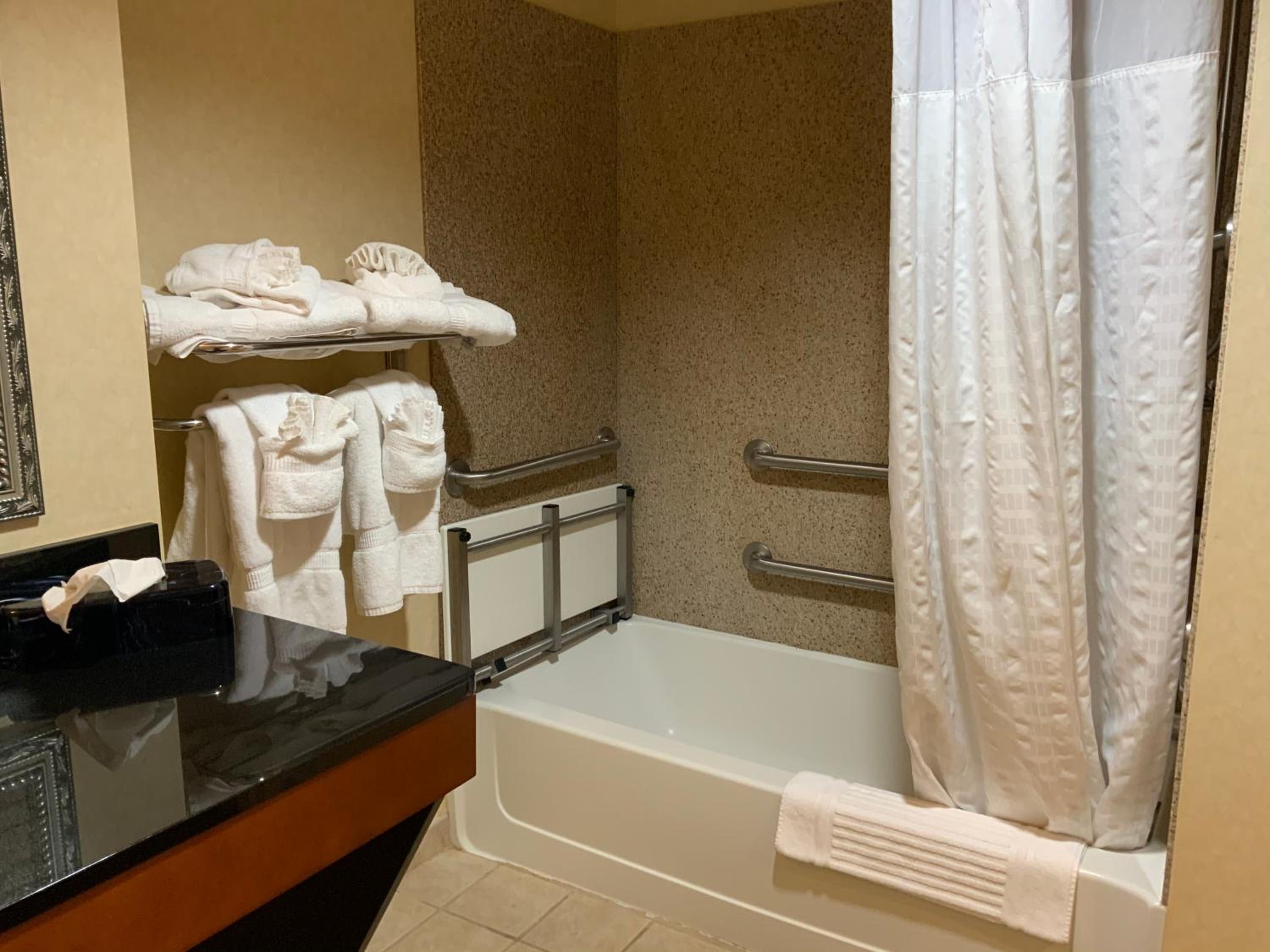 Enjoy complimentary high-speed internet, 24-hour coffee service, and a delicious hot breakfast at our hotel. Relax in the indoor heated saltwater pool, stay fit in the exercise room, and benefit from in-room amenities like refrigerators and microwaves.