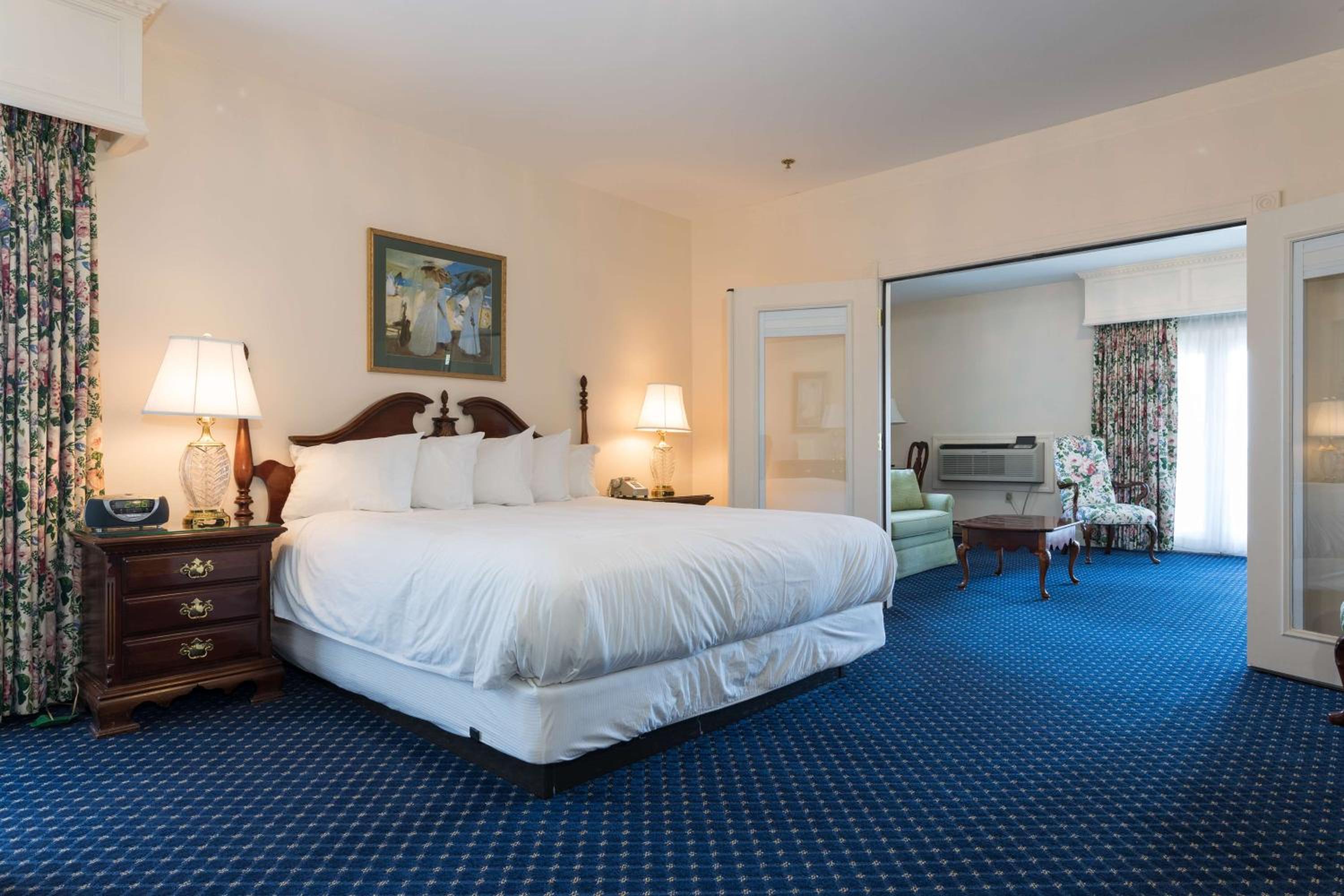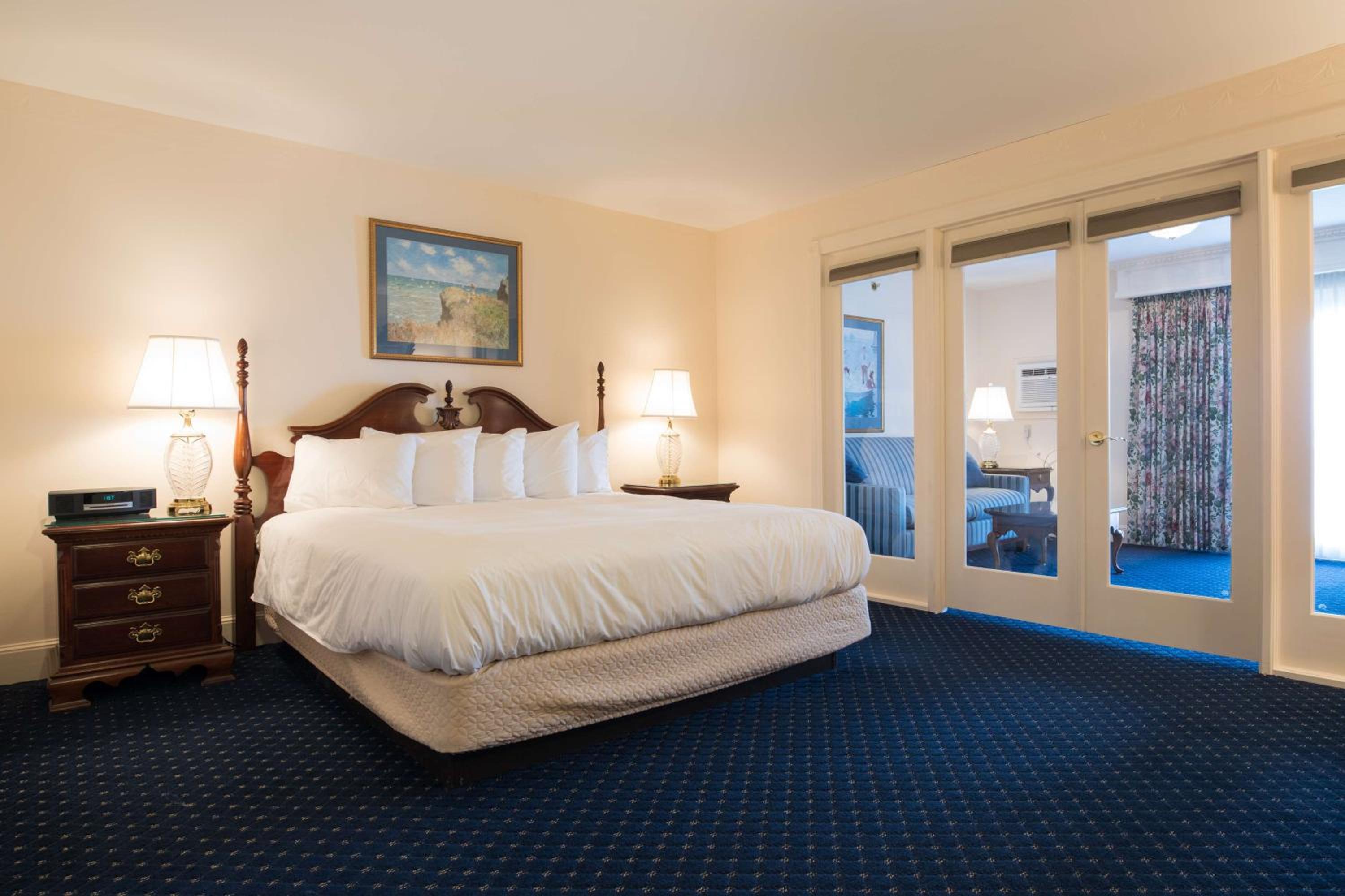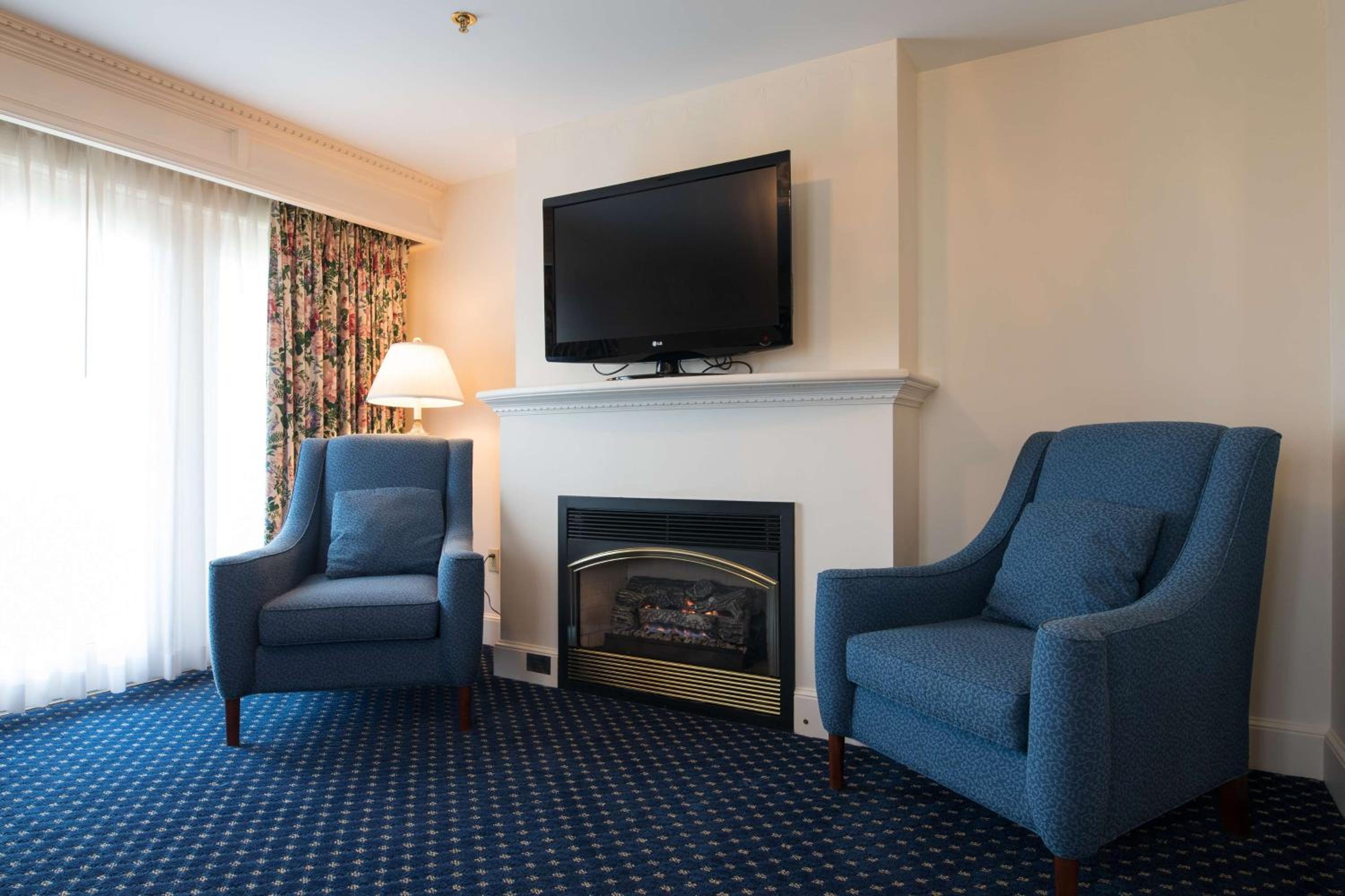 Comfortable Rooms with Fireplaces: Unwind in rooms with flat-screen TVs, mini-fridges, Keurig coffee makers, and the option of a cozy fireplace and private balcony.