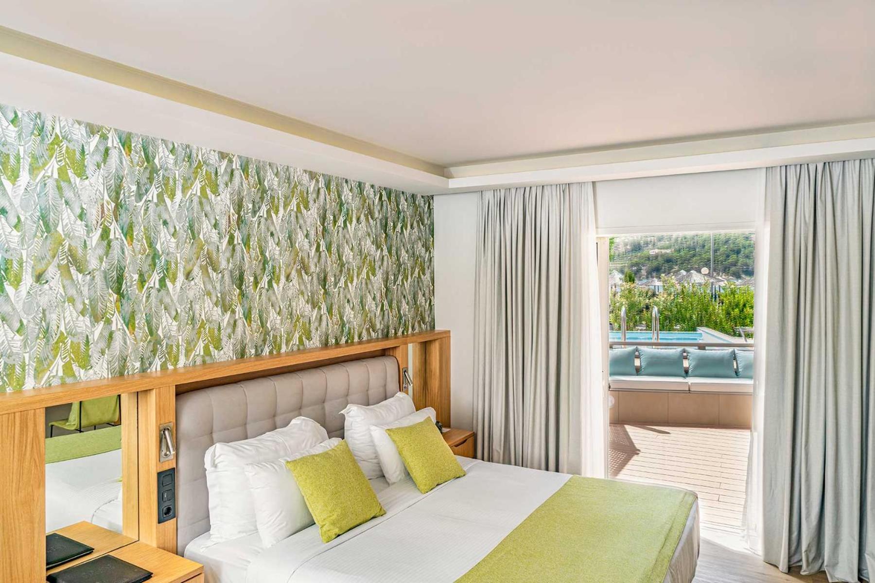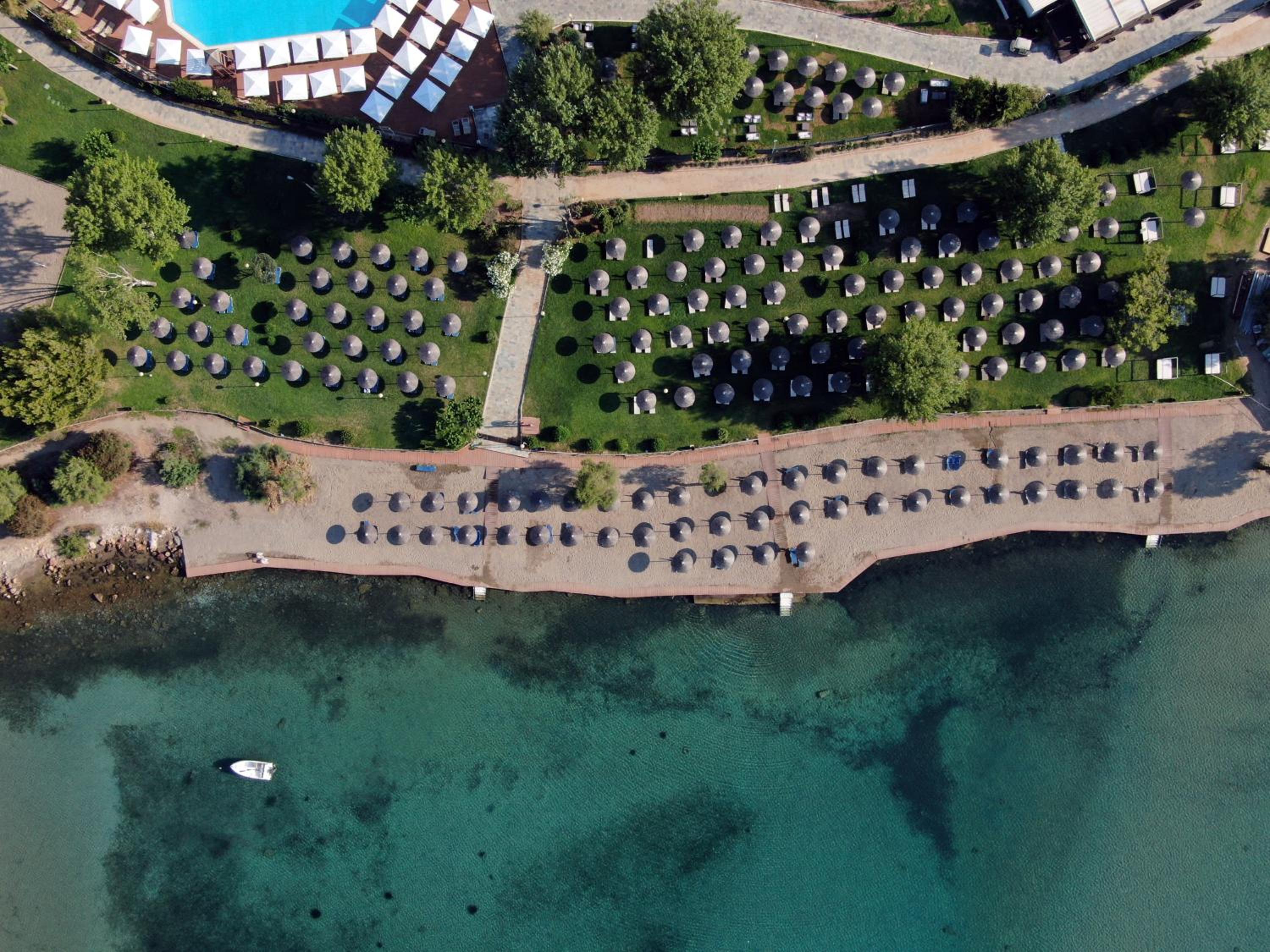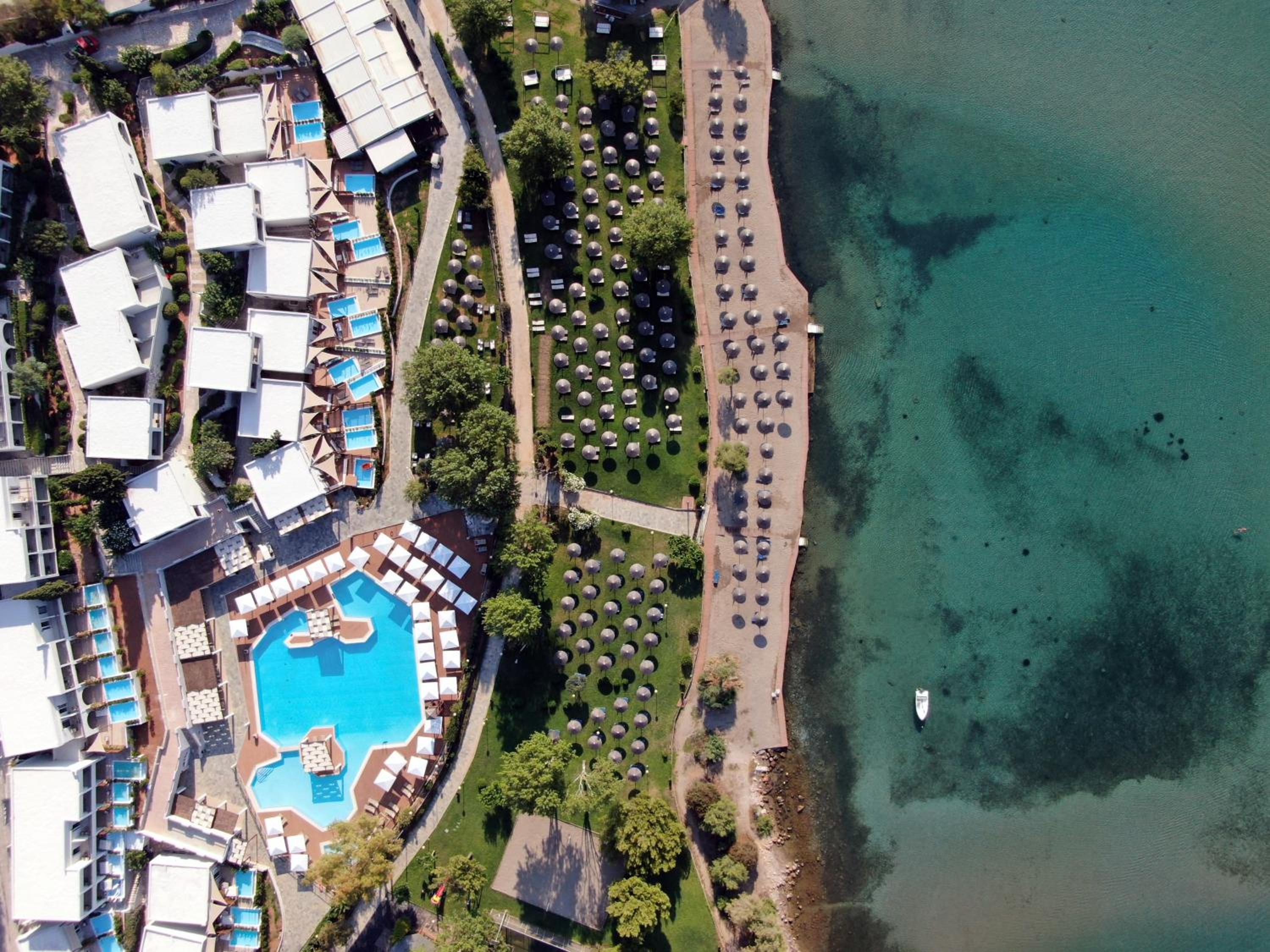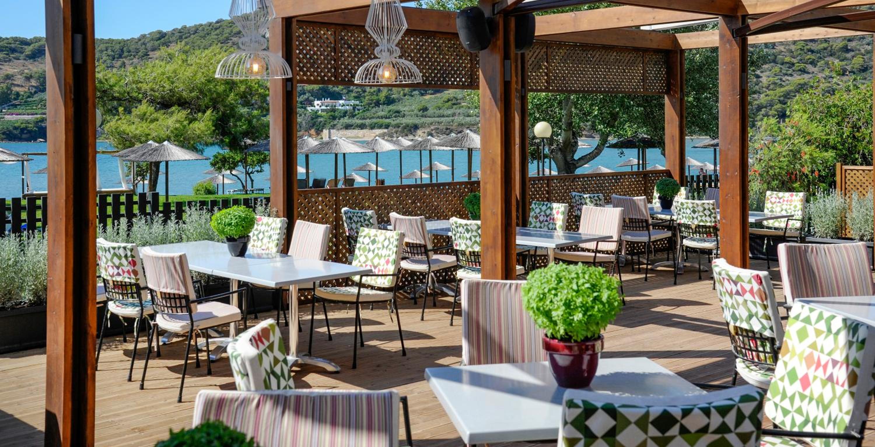 Luxurious Accommodations: Enjoy stunning Aegean Sea views from your private balcony in our 5-star bungalows and rooms equipped with modern amenities.