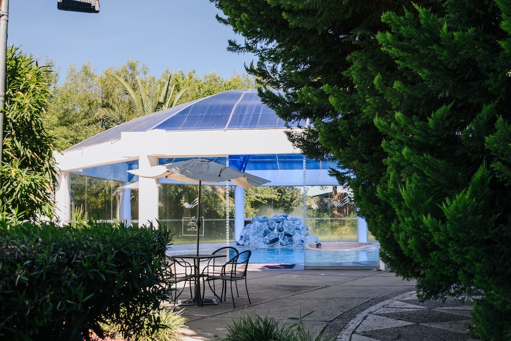 Covered swimming pool was great to have during the day when the sun could really burn you.