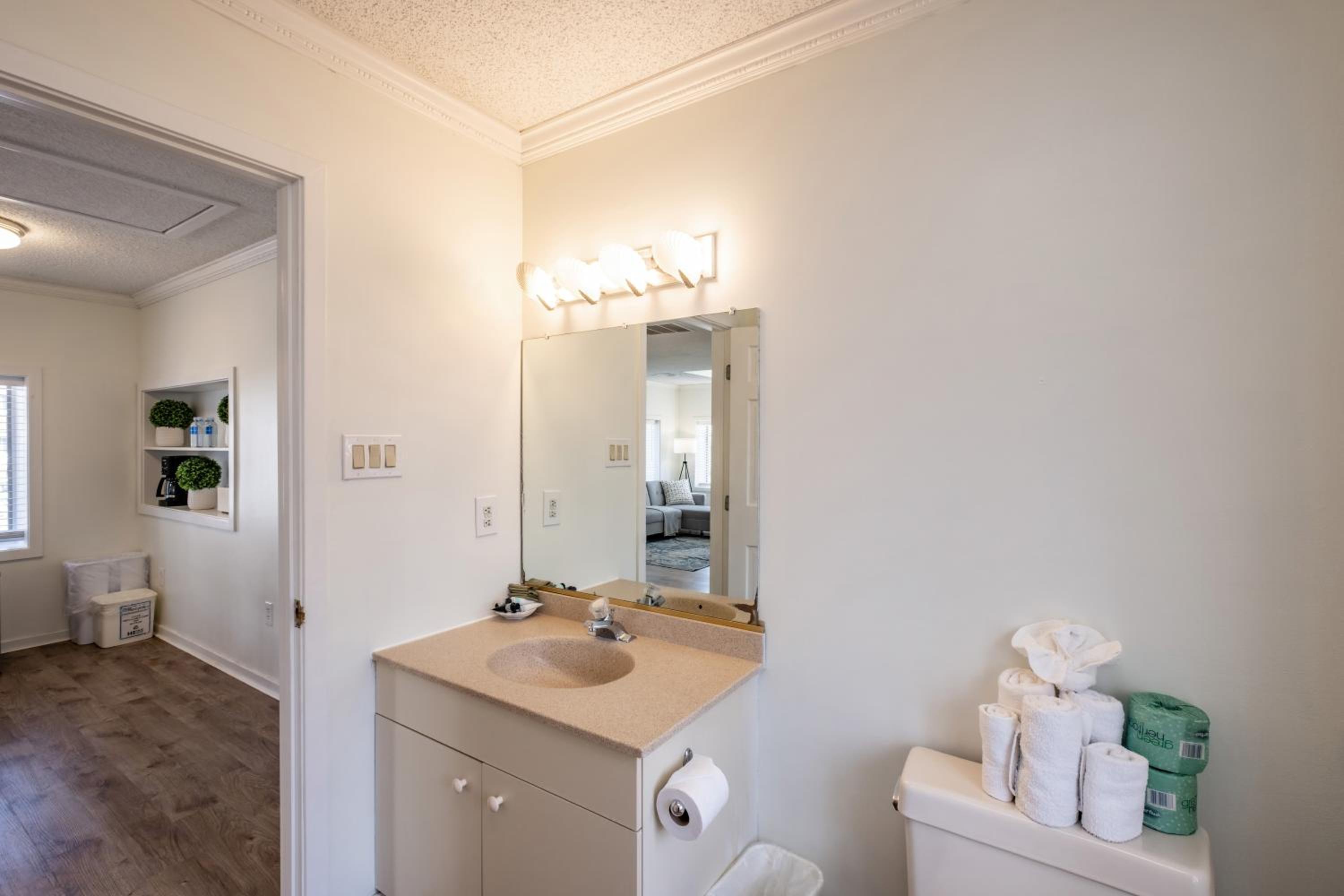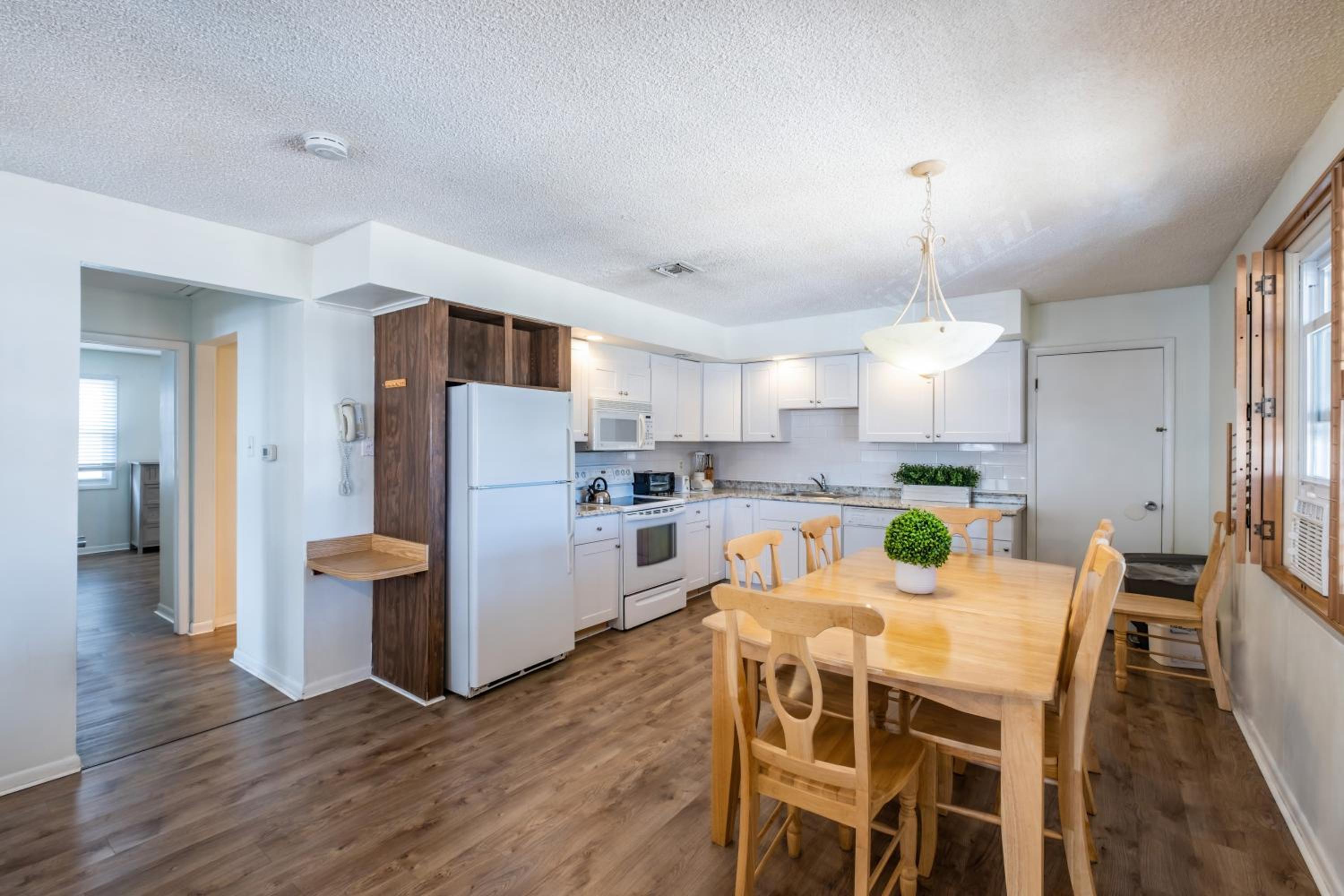 We don't recommend this place. We stayed in the 2 Bedroom Apartment. This is the apartment that is close to, but detached from the main motel. There's no elevator, just an outside flight of stairs up to the apartment. Not a big deal if you have family members that can help carry up the luggage, but just mentioning it because not everyone does and it's also not handicap friendly. The staff didn't offer to help. Also, the parking lot is tight and doesn't offer a guaranteed spot. Part of the parking lot (around half) is valet. Once we got a spot, we chose to keep it and walk to places so we wouldn't lose it or need to wait for the valet. Also, there are a couple more parking spaces completely separate from the motel for those who get shut out on site. The apartment itself didn't have a beachy vibe. We prefer a place with a beach feel when down the shore. While it was nice to have 2 separate bedrooms, there were so many things we didn't like about the place that it wasn't worth the $760 per night that we paid (ouch, that thought still hurts). And there was one bathroom. At first I wasn't able to get a clear answer on that when booking. The bedroom and family room views were of building walls across the alley way and electrical wires, so no views, which made us feel somewhat confined.The apartment was "renovated" but still had an old feel. There were window units for the A/C in the bedrooms, and there wasn't much lighting. There were only one or two outlets in the bedrooms and no outlet or lamp near the nightstand in one of the bedrooms. The beds were comfortable enough, but creaked at times when you moved in them. The kitchen was bare boned and seemed as if management hadn't looked at it in a long time. The kitchen sink had an awful smell coming up from the drain whenever we turned on the water. I was hoping to use that sink as a second sink for us to get ready in the morning and evening, but it smelled too bad to use. In the cabinets there were 2 coffee cups, one wine glass, and a partial set of dishes. There was a coffee maker but no coffee (in the lobby either), and no paper towels I don't know if lack of basic supplies is a new thing, but where we've stayed in OC in recent years there have always been these basic supplies and we paid a lot less. And you couldn't get regular TV channels on the TV, only UTube channels, which was annoying the whole week. My husband is good with that stuff and was sure about it. Also, the microwave seemed very old and had one setting. We wanted to defrost a bagel and reheat some food over the week but had to use cook for everything. The bathroom was fine but the hairdryer needed a lot of tries to work, and there was a lot of closet space in the place but only a couple hangers total so you couldn't use much of the space. We complained about the sink smell and the microwave and they said they would send someone to look at them, but we don't like to have people coming in to fix stuff while we're on vacation, and there was so much to fix they would have been there for we don't know how long. All these issues couldn't have just happened when we got there so they should have been addressed beforehand. The employees at The Forum are nice, but not very knowledgable answering basic questions I had when booking and while there. They usually had to ask the manager and get back to me. One more thing to note, I had considered booking two adjoining regular rooms instead of the apartment. I was originally told that there wasn't a guarantee I would get them adjoining, then told by another employee that it would be no problem and it just needed to be noted on the reservation, but then told by someone else that there are hardly any adjoining rooms and reservations for them have to be made months in advance. I'm still confused, but I would go with no guarantee.