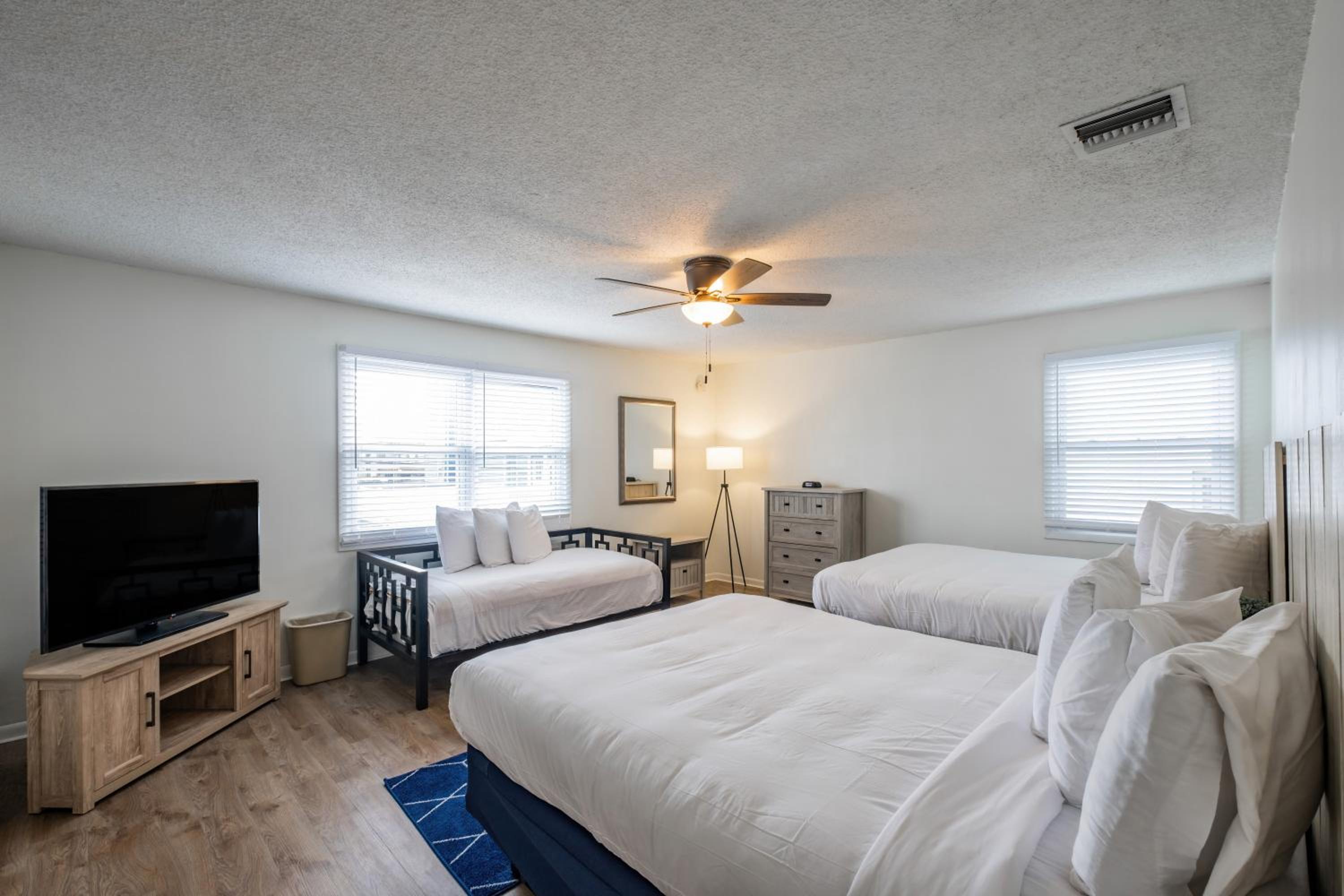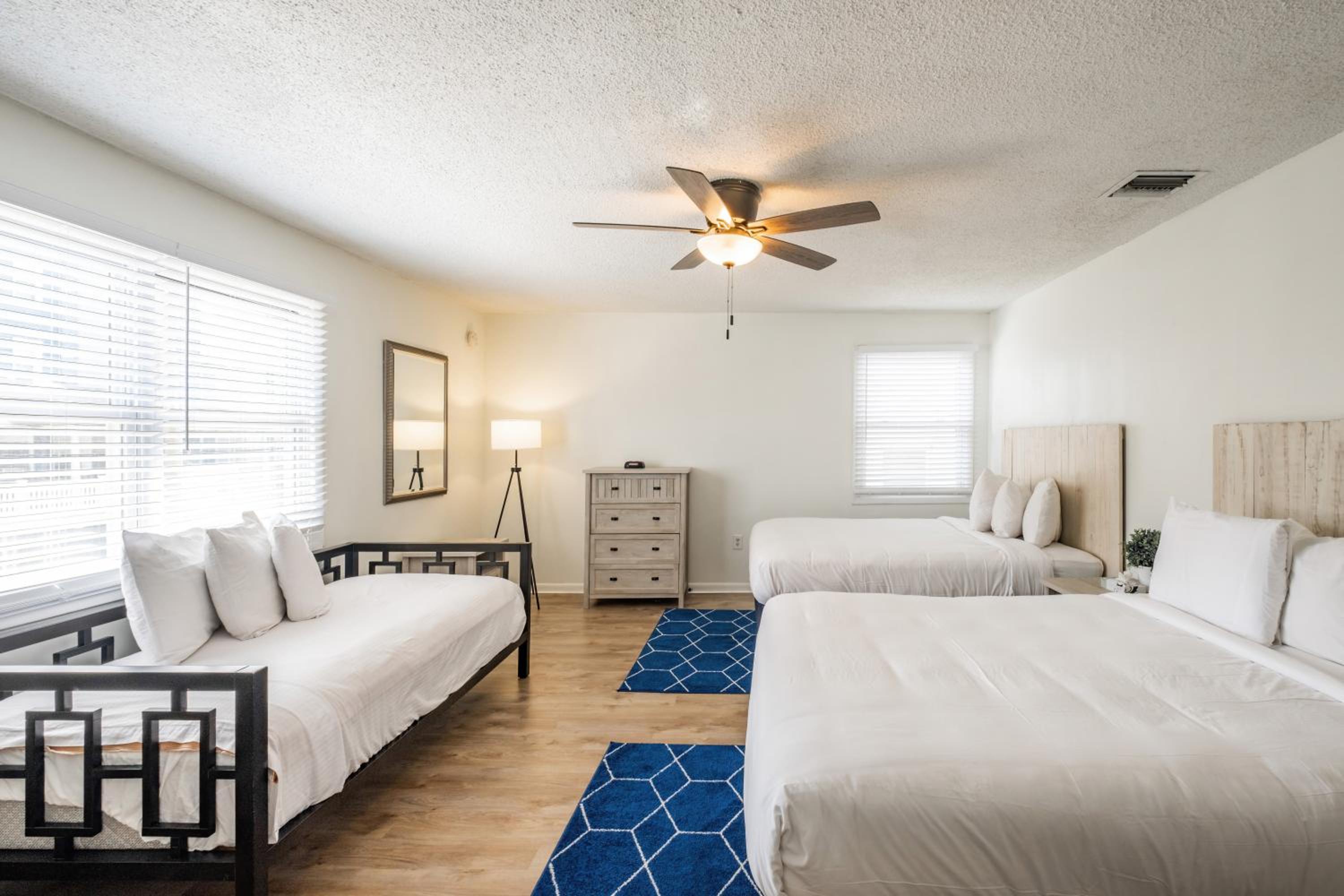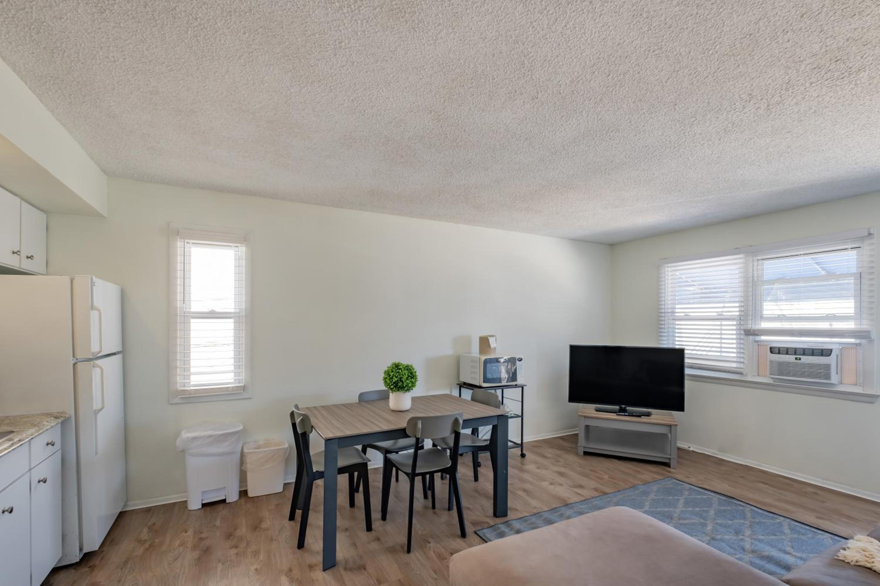 Great spot right by some food spots and coffee shops, one block walk from the board walk! Nice amenities and the cleaning service came by everday to take care of our room. Could not of asked for a better experience!