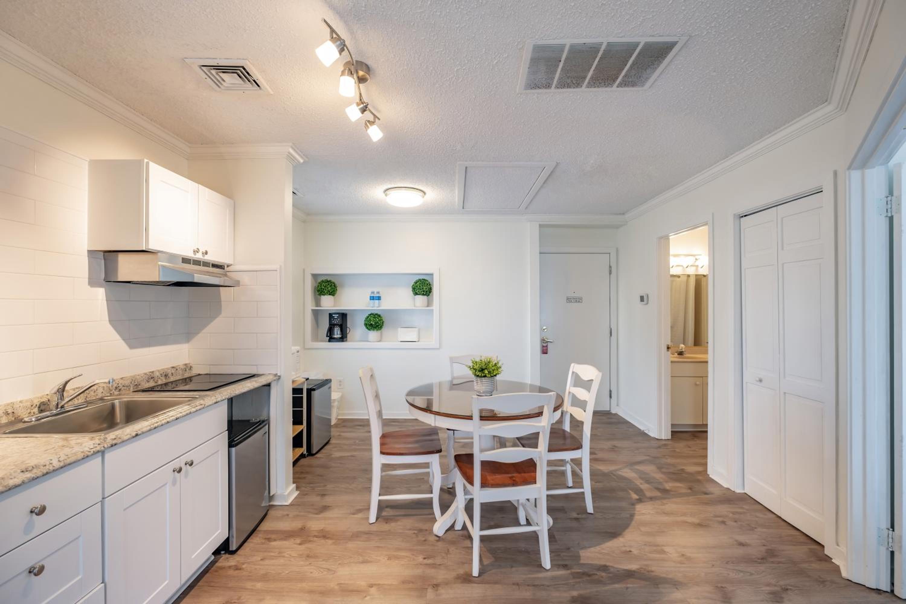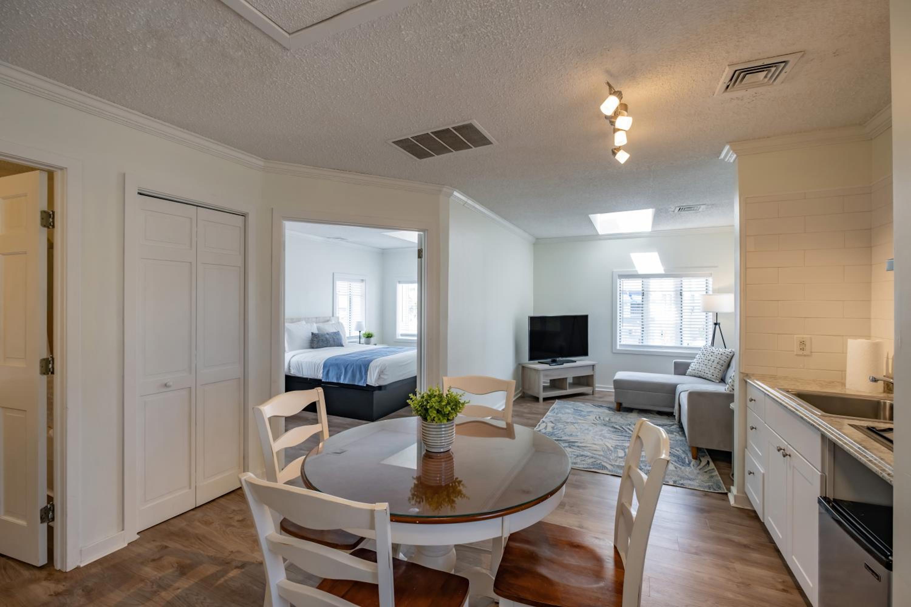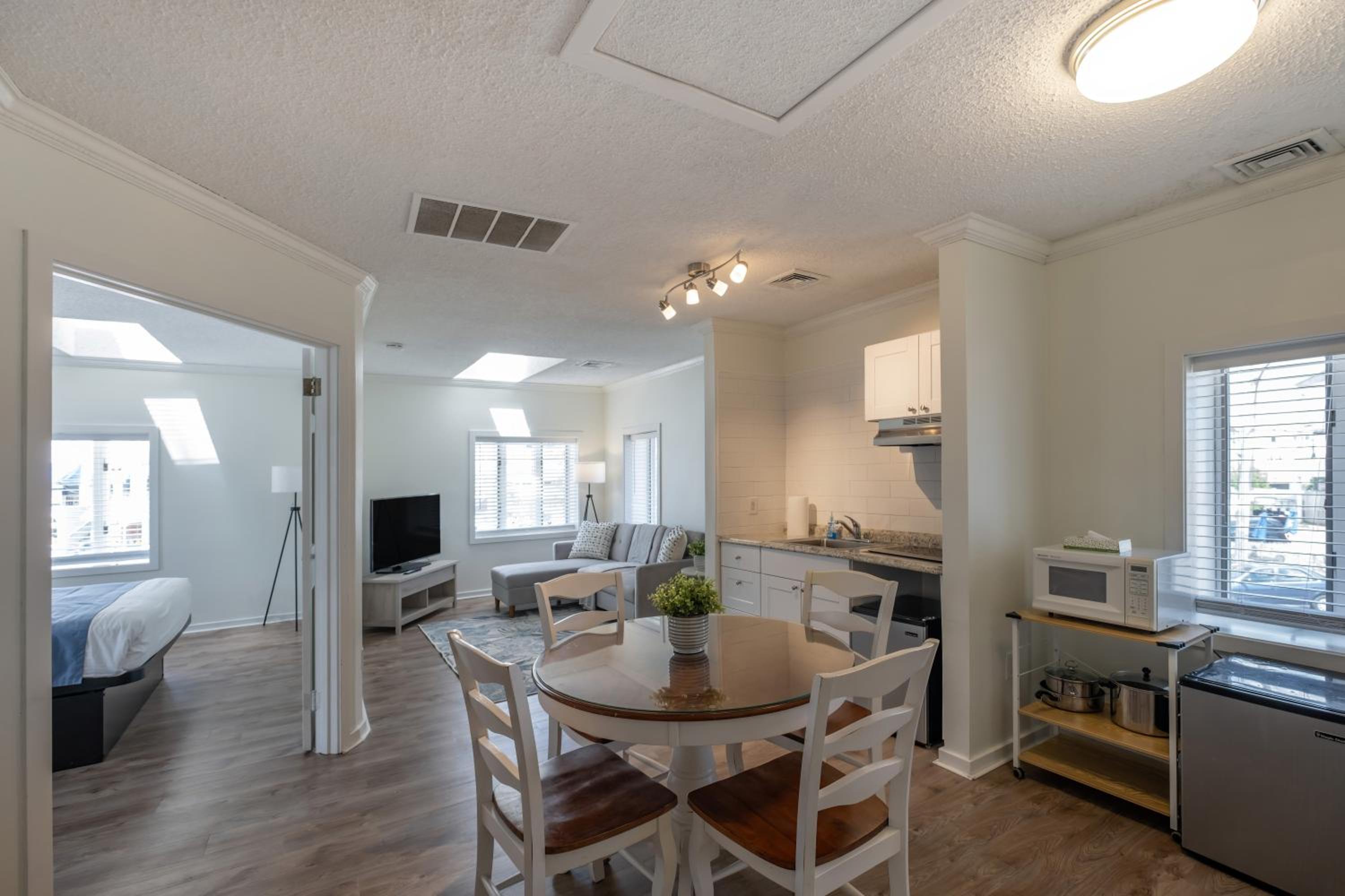 Great spot right by some food spots and coffee shops, one block walk from the board walk! Nice amenities and the cleaning service came by everday to take care of our room. Could not of asked for a better experience!