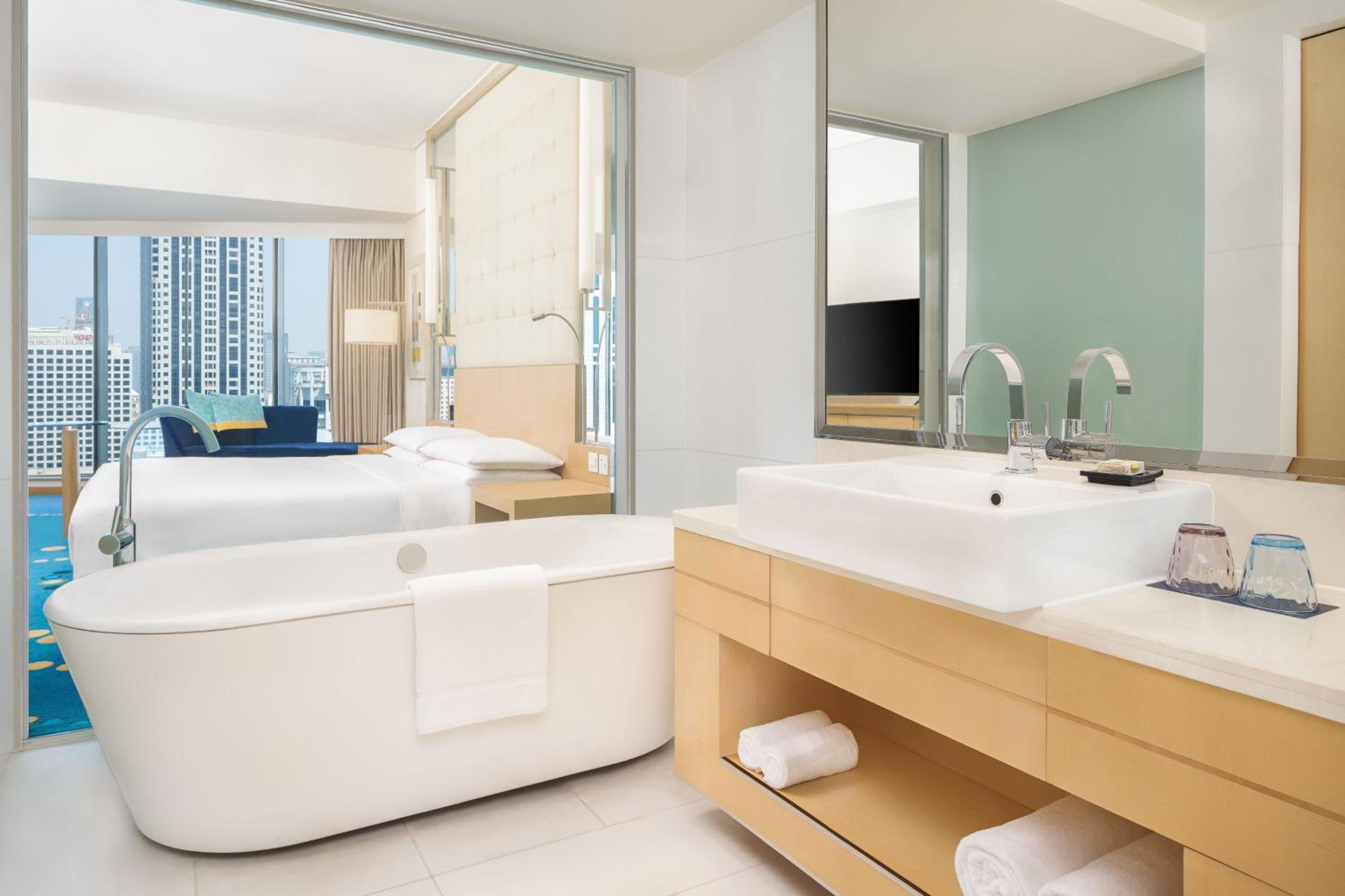 Indulge in culinary delights with 6 dining options, including Chinese, Japanese, and international cuisines, as well as refreshing cocktails at the Yu Bar. Stay active at the 24-hour fitness center or take a relaxing dip in the indoor pool.