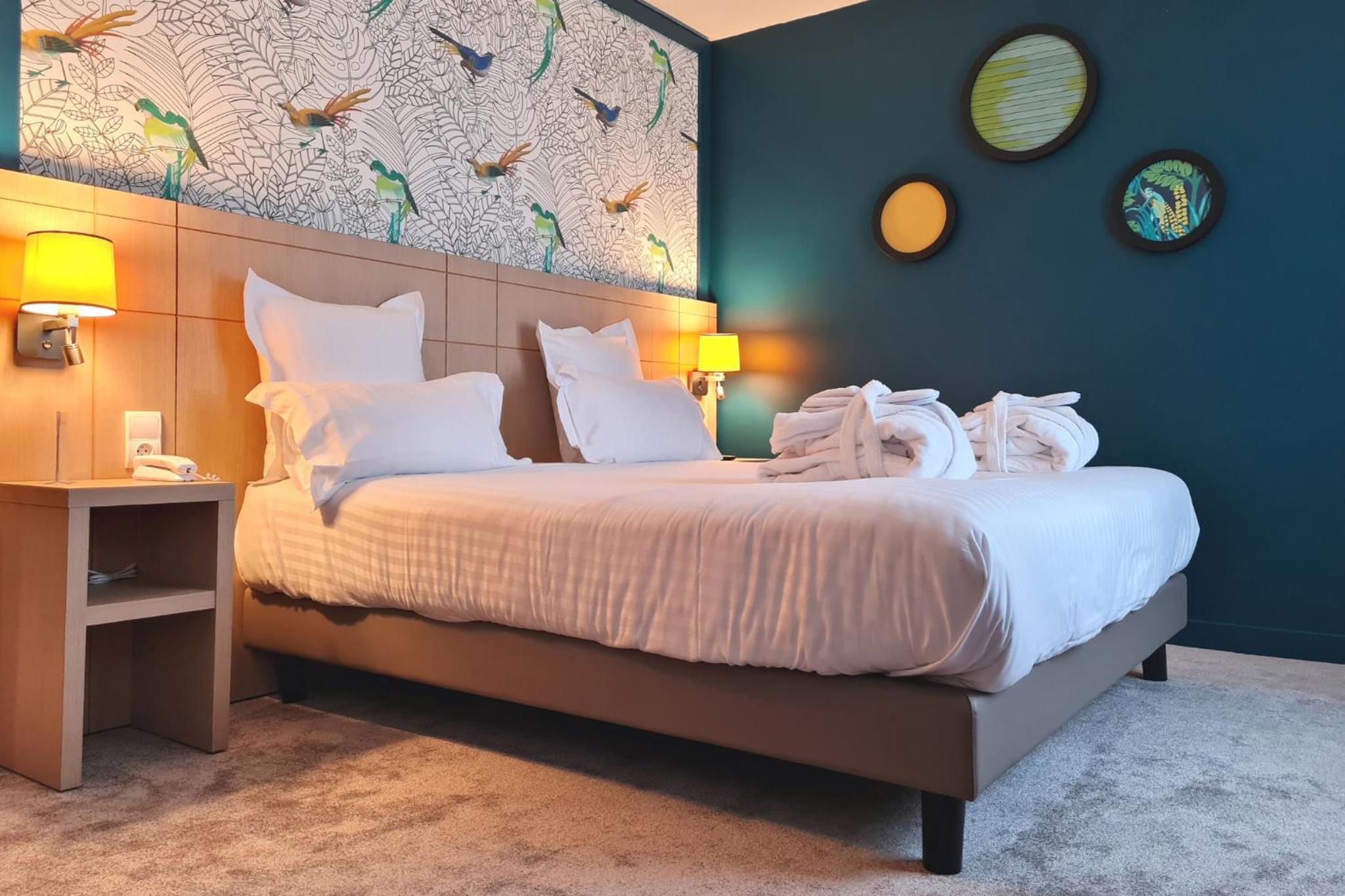Discover the Golf of Morbihan nearby or take a leisurely 10-minute stroll to the port. For added convenience, private parking is available on-site. Book now to secure your spot at this vibrant and comfortable hotel.