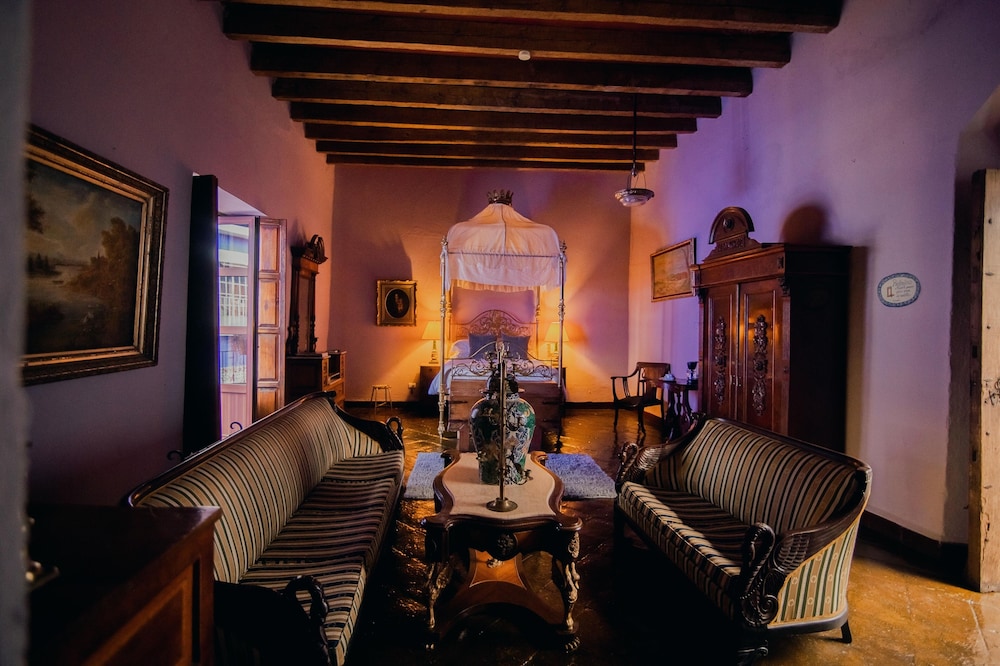 As first time visitors to Puebla, we could not have chosen a more perfect hotel. When you enter the gates of this former convent, you are transported to another world, in another century. The beautiful property is filled with art, antique furniture and objects, as well as many trees and plants in the charming pink courtyard. We were greeted by Andrés who graciously upgraded us to a master suite, a magnificent high-ceilinged room decorated with antique paintings, and sculptures, and contains 2 large sofas and a canopy bed.