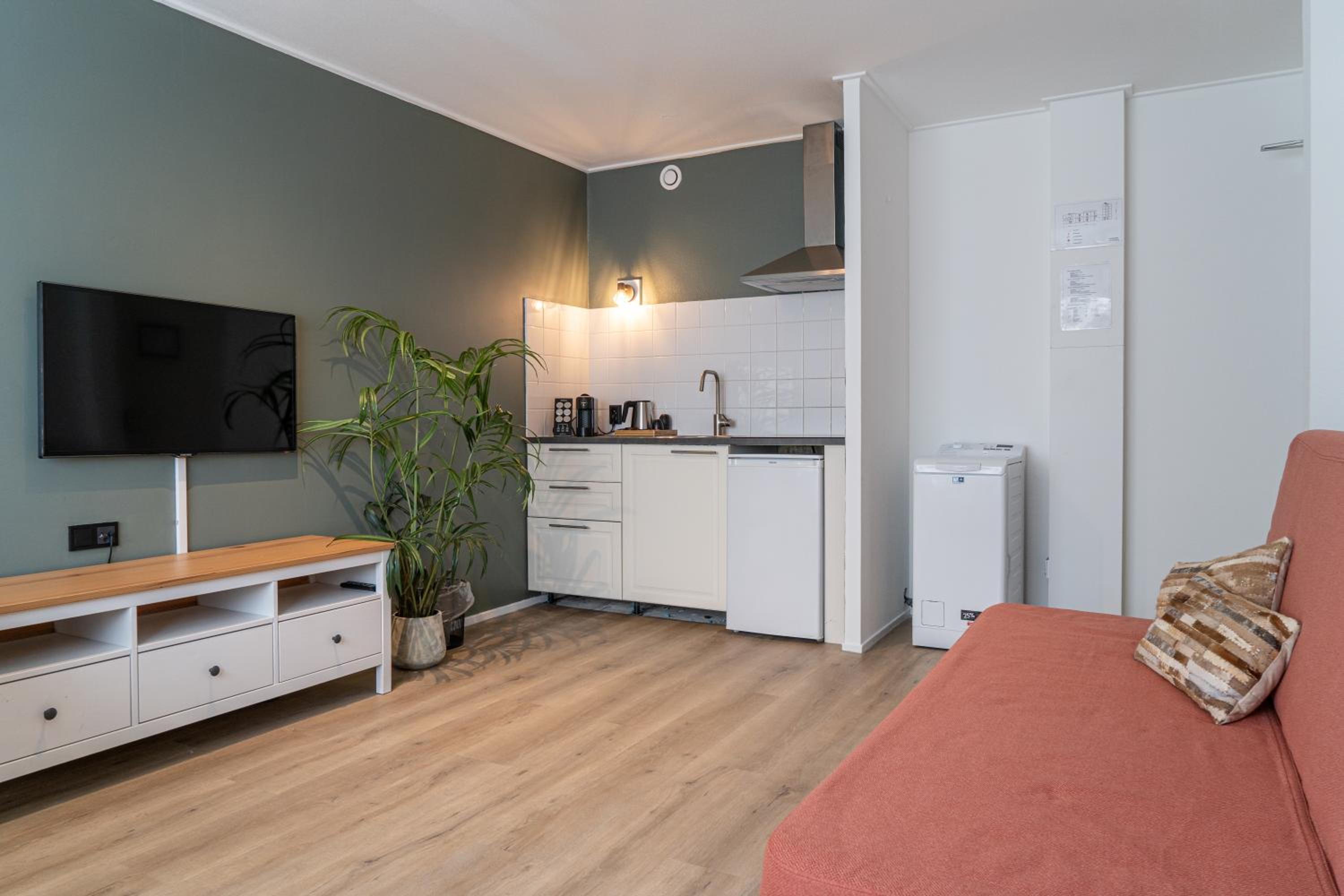 Everything was decent: clean; good location in Lisse; super clean; lots of towels, soap/shampoo, and so on; kettle and instant coffee/tea; close to restaurants and grocery stores; comfortable and spacious lobby with comfortable seating, free water and a vending machine.