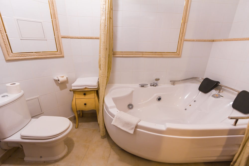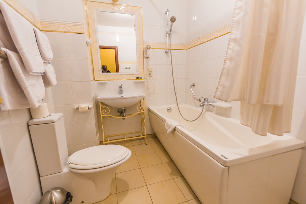 Room was dated, the 'antique' furnite in the room worn out. Beds OK and at least bedding clean. Bathroom was OK but had broken mirror and shower tray drained very slowly. Loose floorboards meant that everything in the room shook when anyone walked.