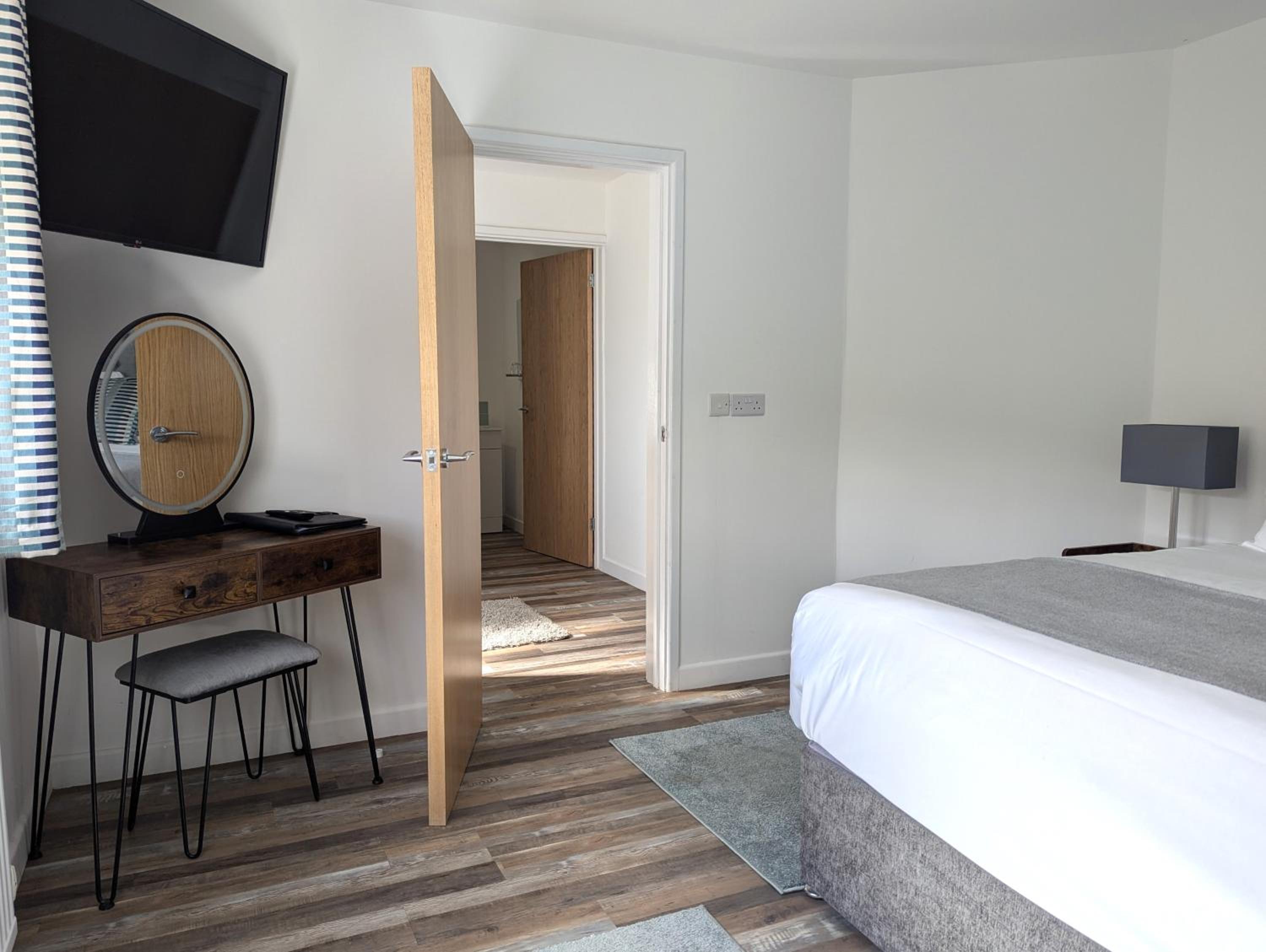 We have stayed at this location before, mainly for convenience. Whilst the place is spotlessly clean, and lovely and warm, there are some issues that concern us. To start with, there is no security in the place, the swipe facility on the hall door to the bedrooms is broken, when we stayed back in the summer, it was the same. The blinds in the bedrooms are not adequate, you might as well sleep with a light on, we were in Room 7 and had next to no sleep, curtains are needed. Top priority is to make the place safe, anyone could have walked in there.