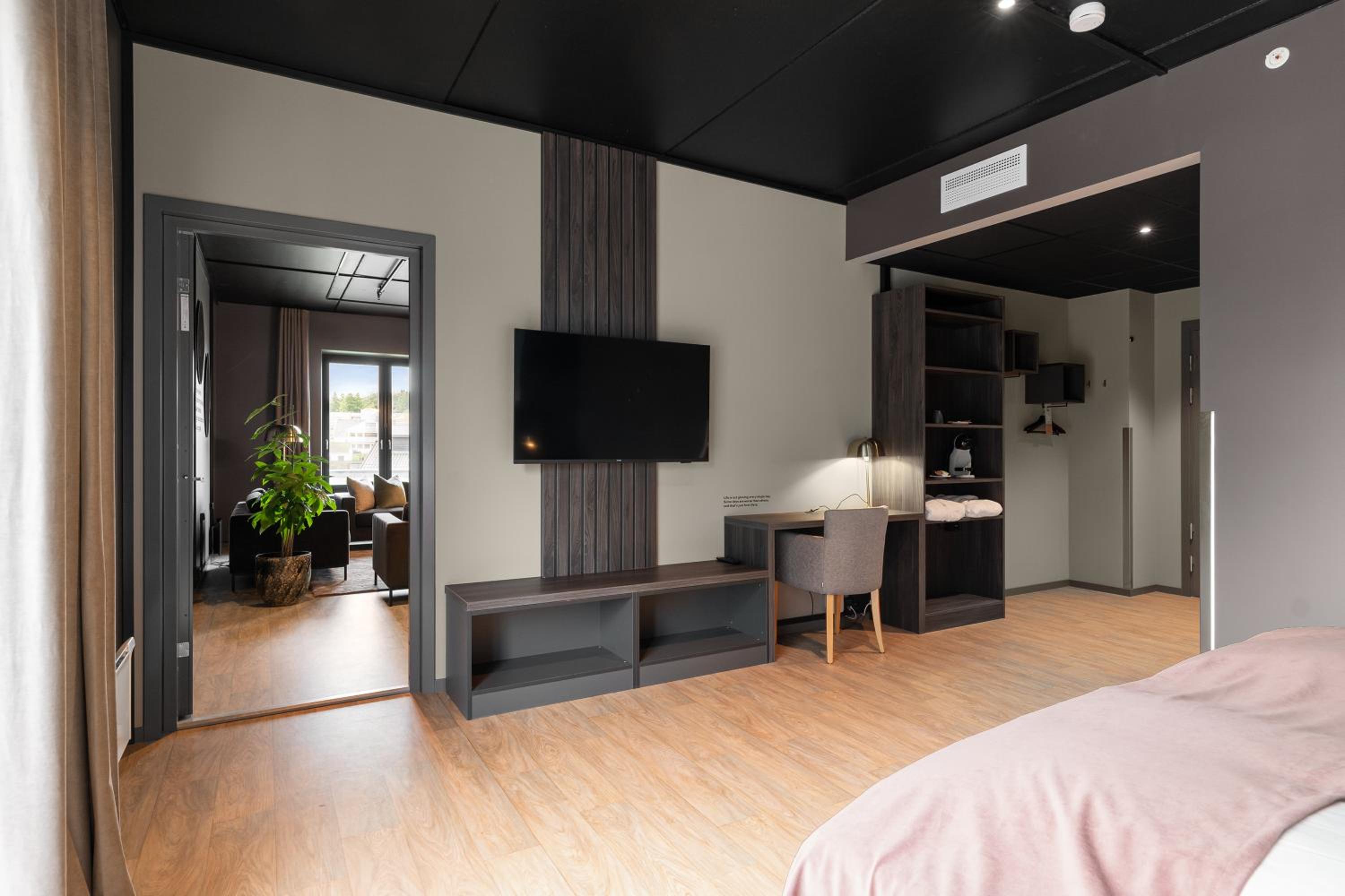 Hotell Jæren, conveniently located next to the Fritz Røed Sculpture Park, offers a cozy retreat just a stone's throw away from Bryne Train Station. The rooms boast wooden floors, cable TV, and modern bathrooms, with some even equipped with a fridge for added convenience.