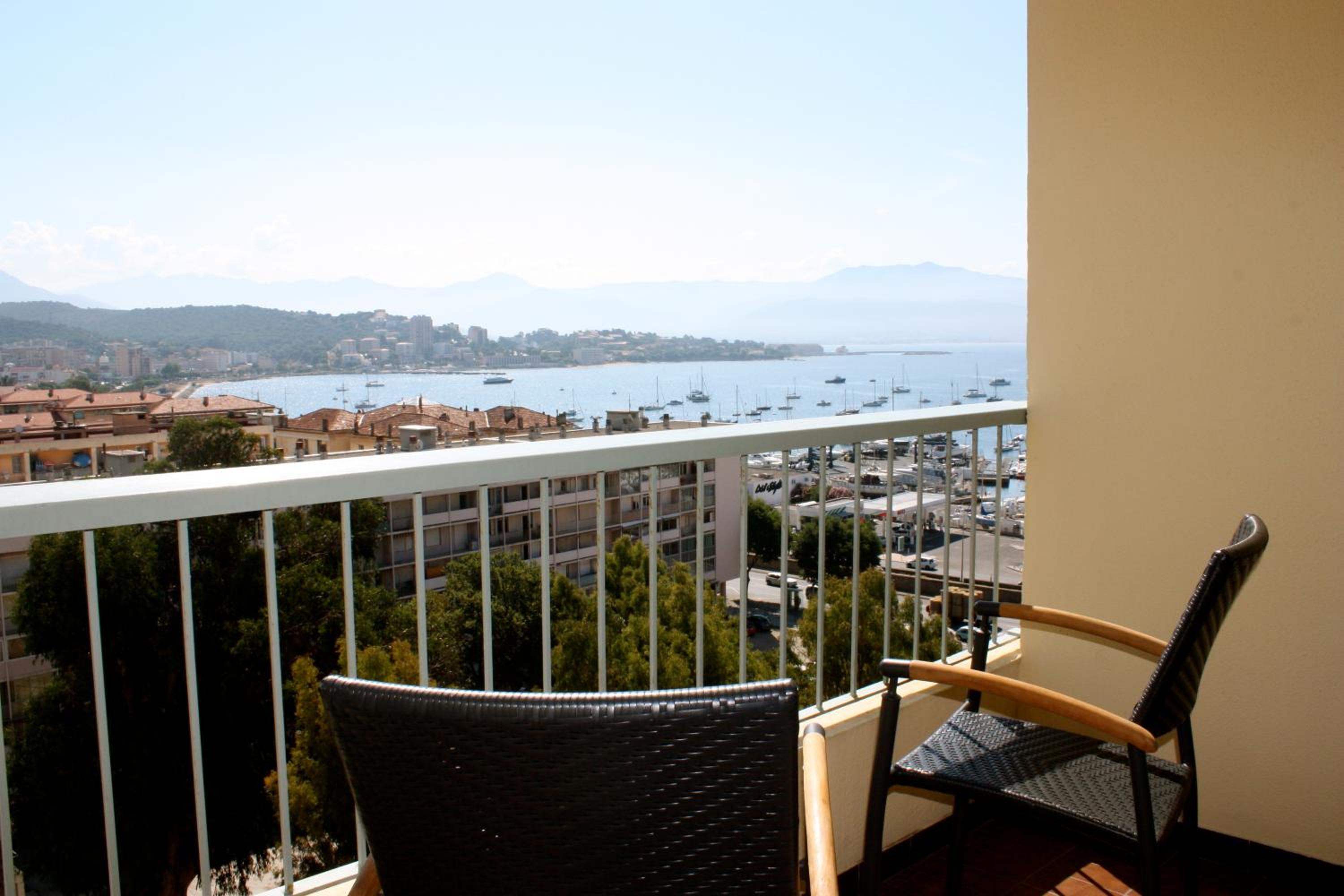 Indulge in charming rooms at Hotel Castel Vecchio, each boasting a private balcony offering stunning views of Ajaccio's pretty harbour. Enjoy modern amenities like massaging showers or baths and a flat-screen TV for ultimate relaxation.